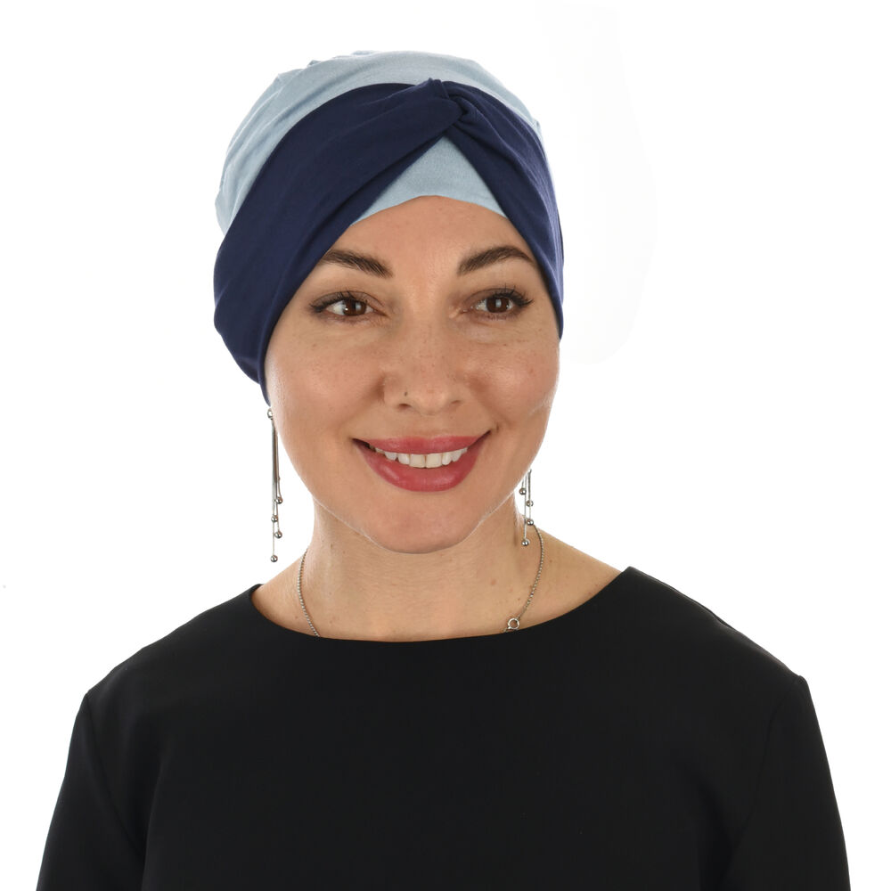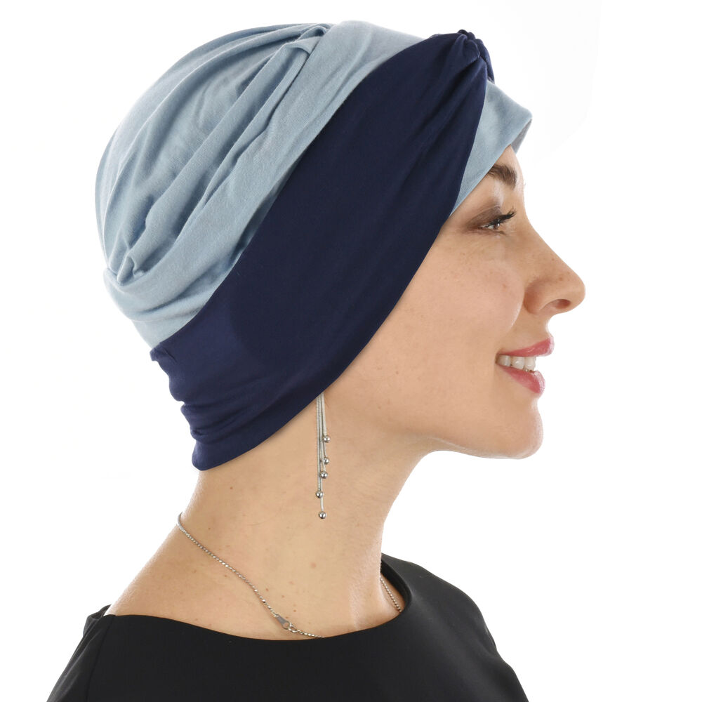 Bamboo Turban with Mix n Match Headband Set | #1 Baby Blue Hat & Navy Band