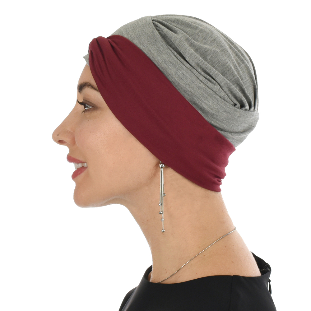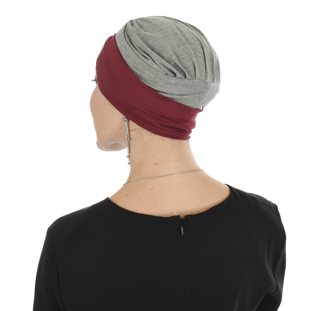 Bamboo Turban with Mix n Match Headband Set | #3 Grey Hat & Burgundy Band