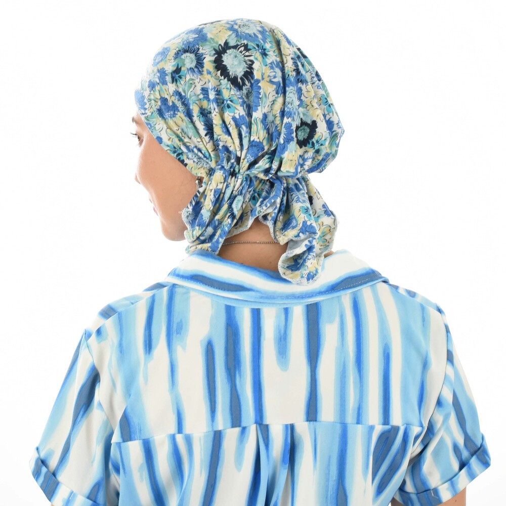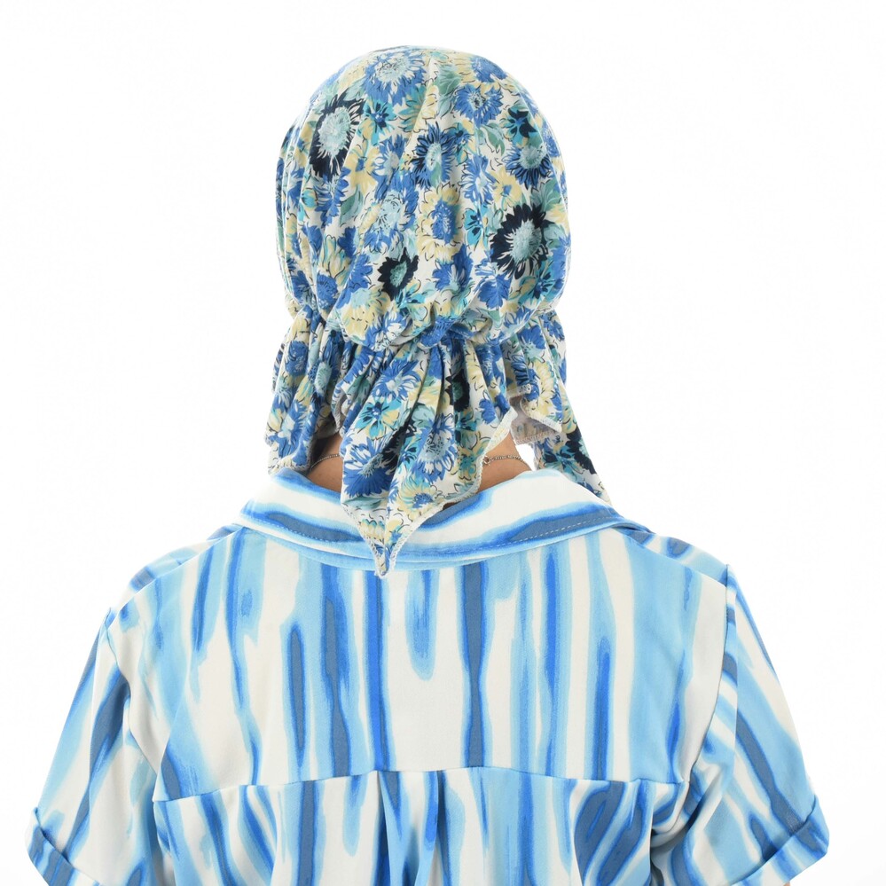 The Stretch Floral Pre-tied Scarf Holly can accommodate most head sizes from petite to large. The lightweight material and the roomy cut make it comfortable to wear.