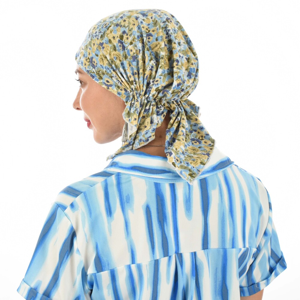 The Stretch Floral Pre-tied Scarf Holly can accommodate most head sizes from petite to large. The lightweight material and the roomy cut make it comfortable to wear.