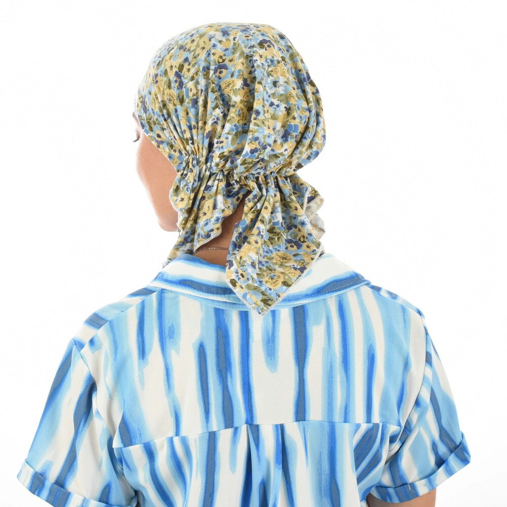 Stretch Floral Pre-tied Scarf Holly | #6 Watercolour Flowers Green Blue & Mustard