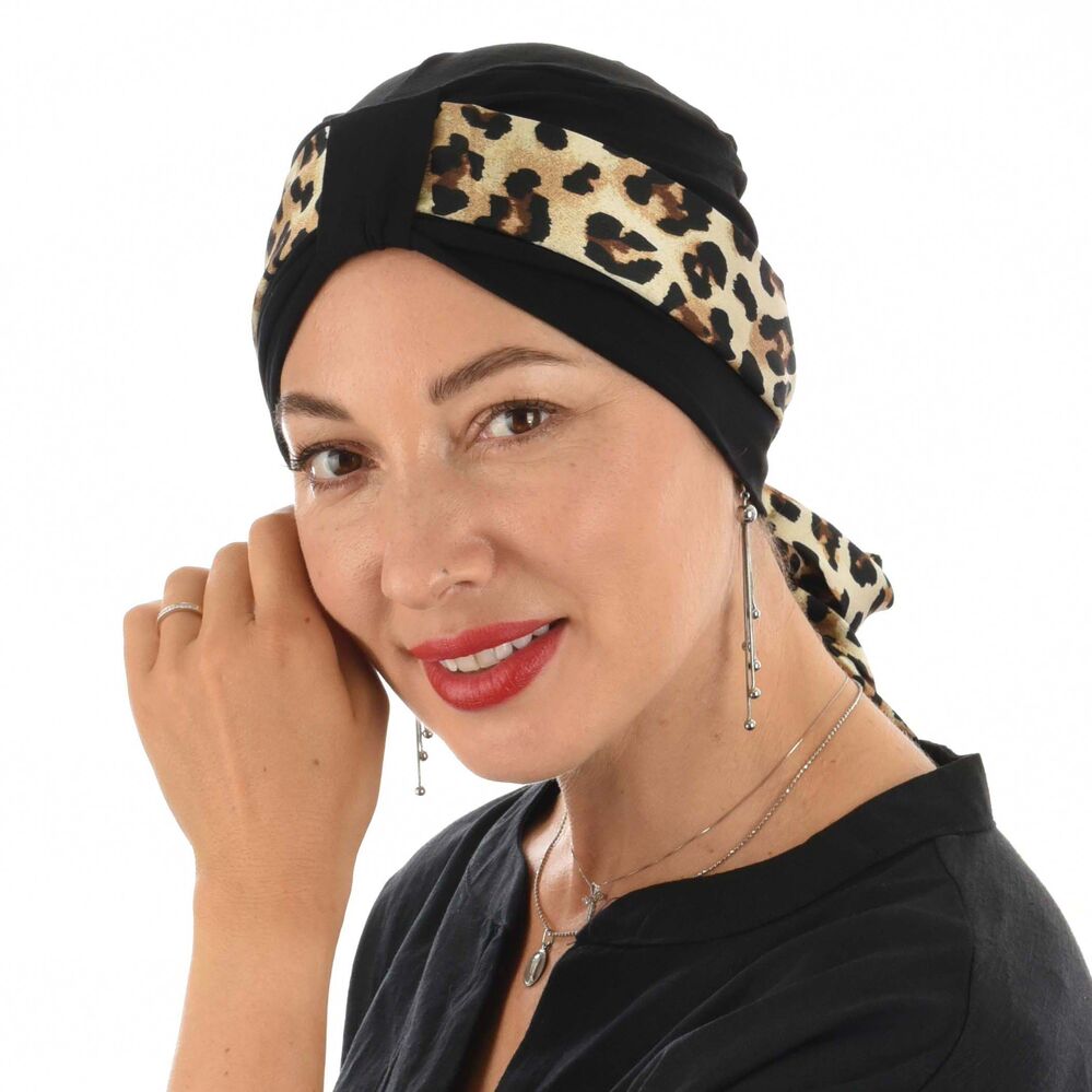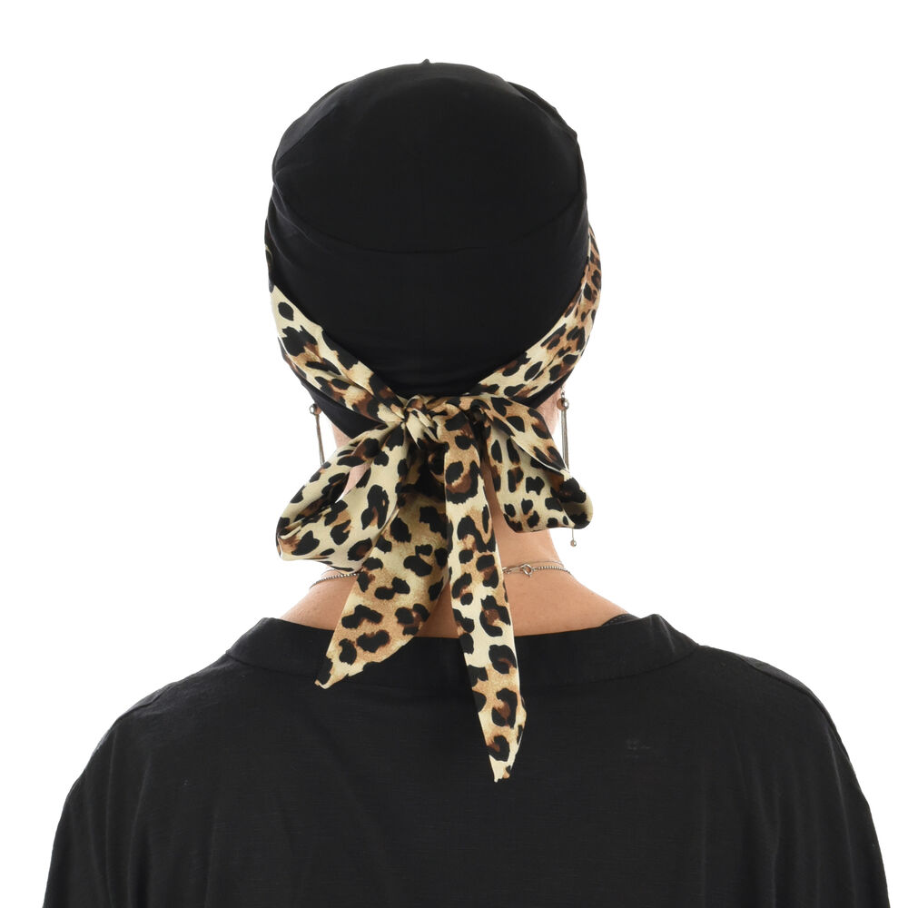 BAMBOO CLASSIC TURBAN - MICHELLE | Black with Leopard Print Sash