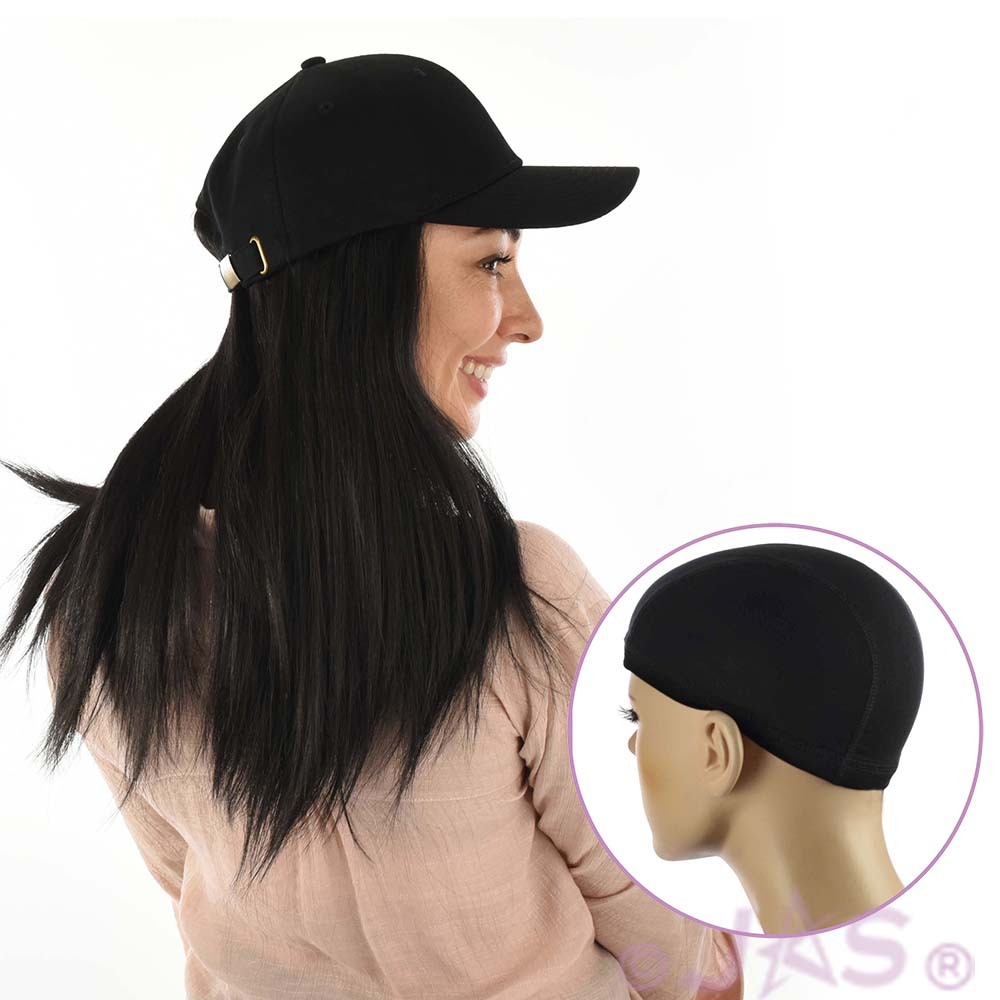 - Please be aware that the Baseball Cap with Hair - Laura is designed to mimic natural hair, and as a result, slight asymmetry may be present. This provides a realistic and authentic look.