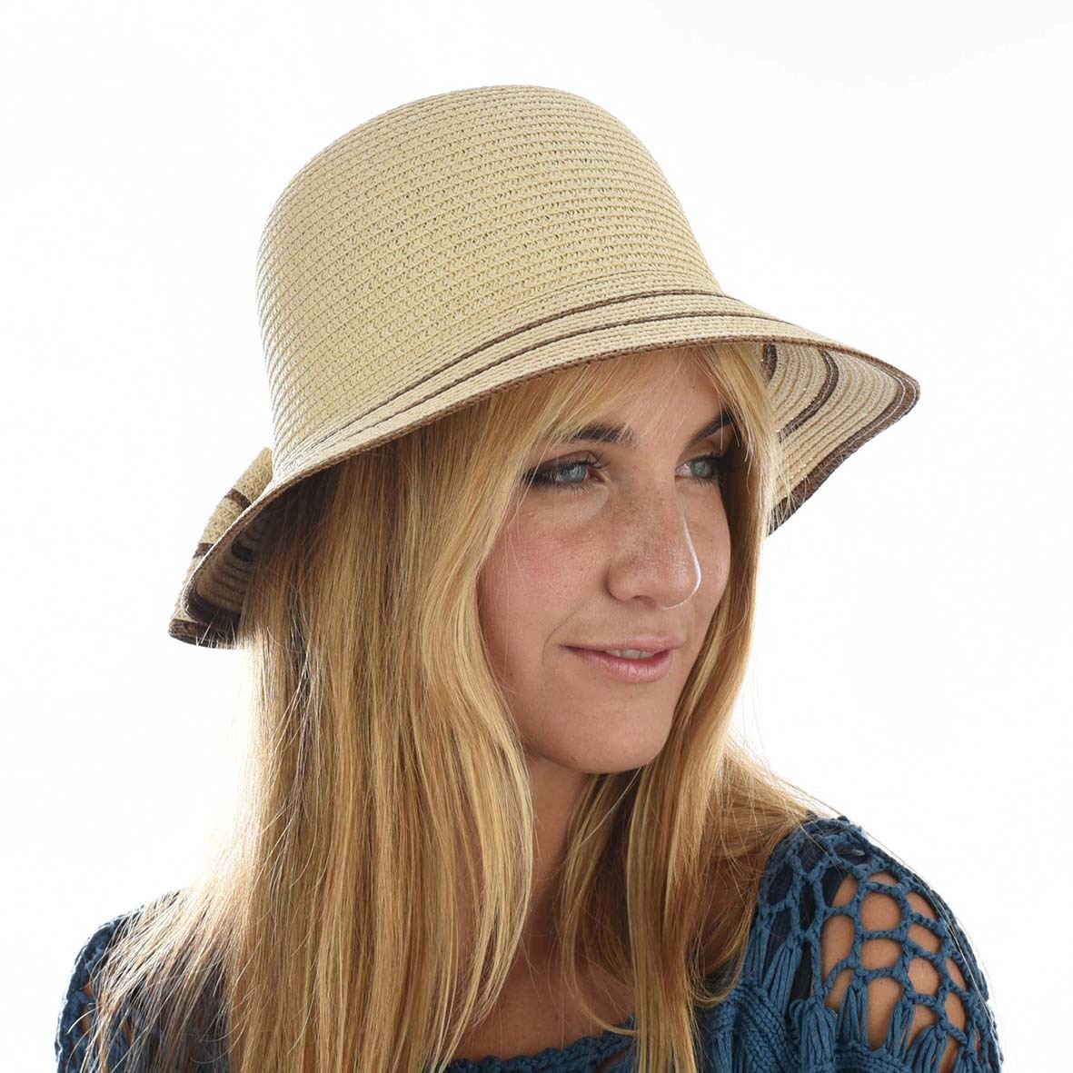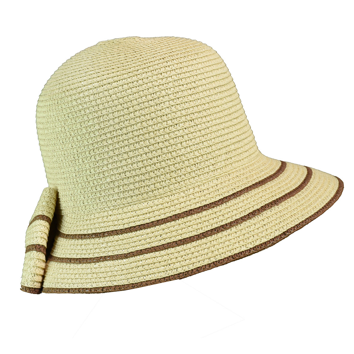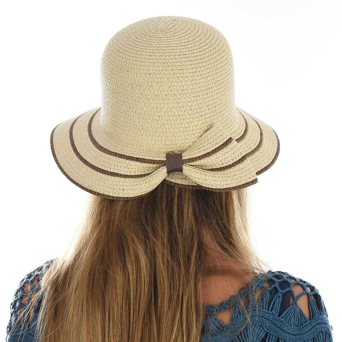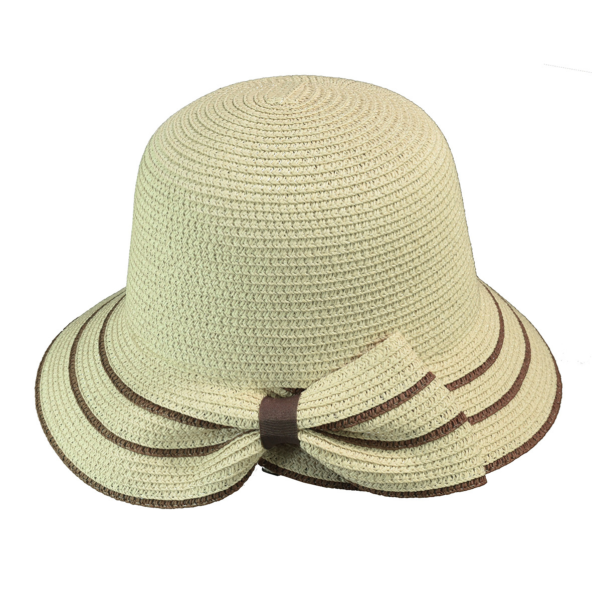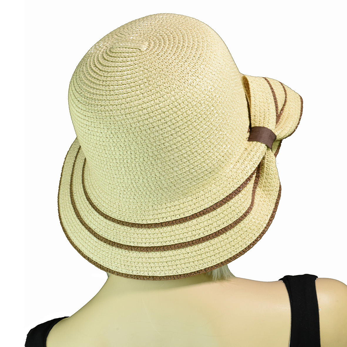 The Big Bow Cloche Bucket Sun Hat is designed for full head coverage. It has a 7cm wide brim and a 10cm deep crown. It is made of paper straw yarn, which is not only durable but also moisture wicking and breathable.