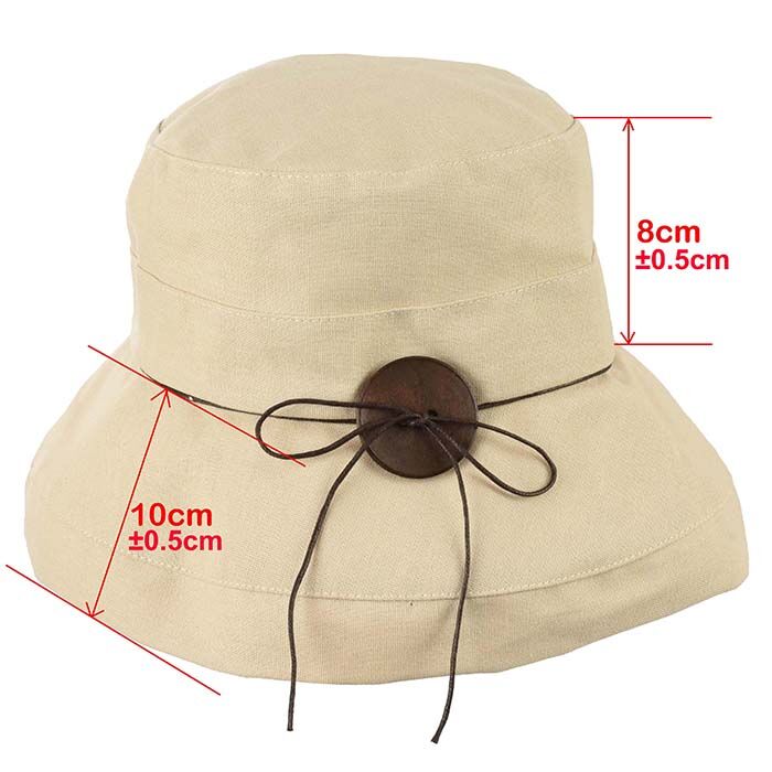 The versatile Big Button Linen Bucket Hat is made of cotton and linen blend fabric. It features an 8cm deep crown and a 10cm wide brim and is great for all seasons. It is cool in summer, and it is just enough to keep the chill off in your head on a cold day.