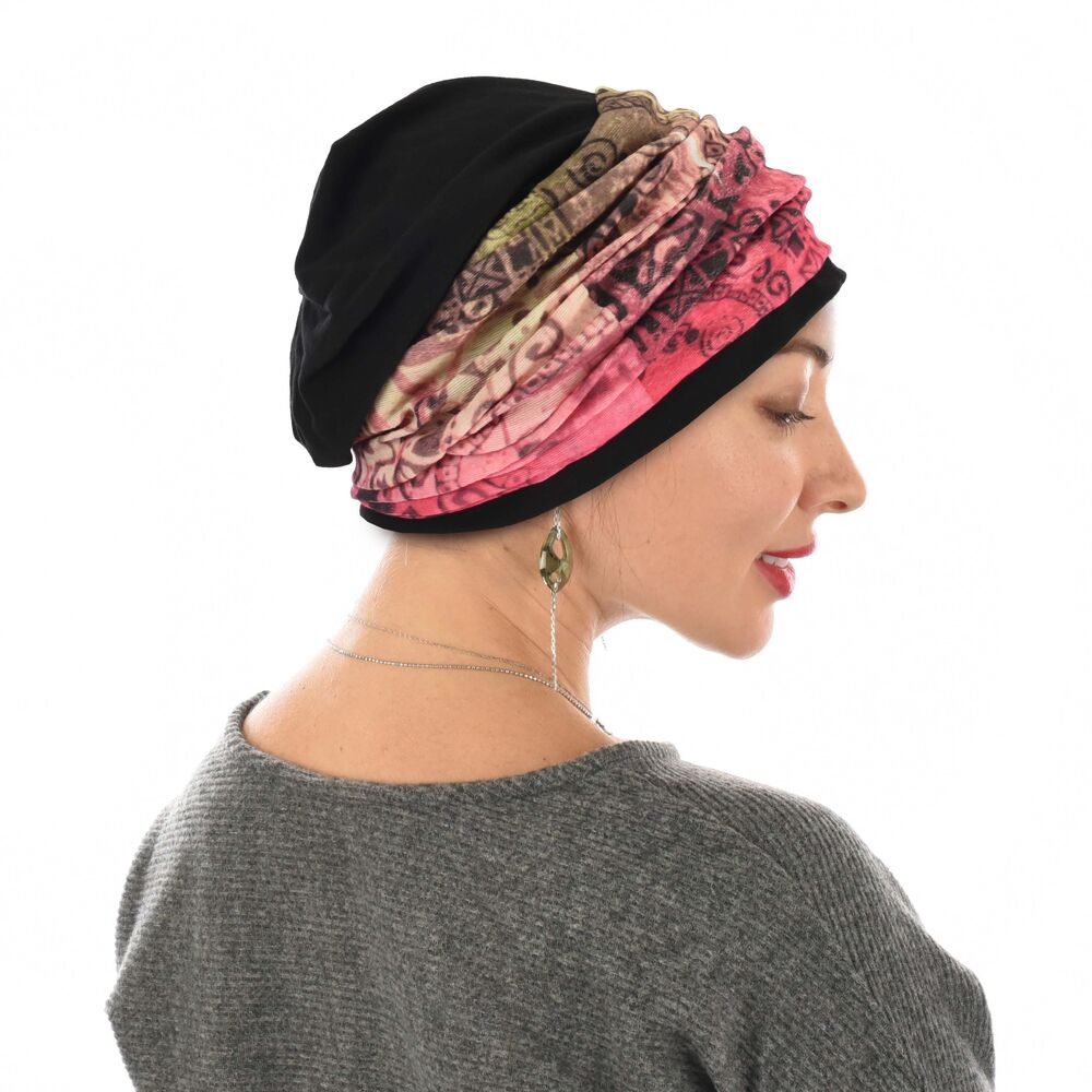 The Black Premium Cotton Beanie is made from our favourite jersey knit fabric, 95% cotton and 5% spandex. It is so soft and comfortable – an ideal headwear for those who are experiencing hair loss due to medical conditions such as chemotherapy and alopecia.