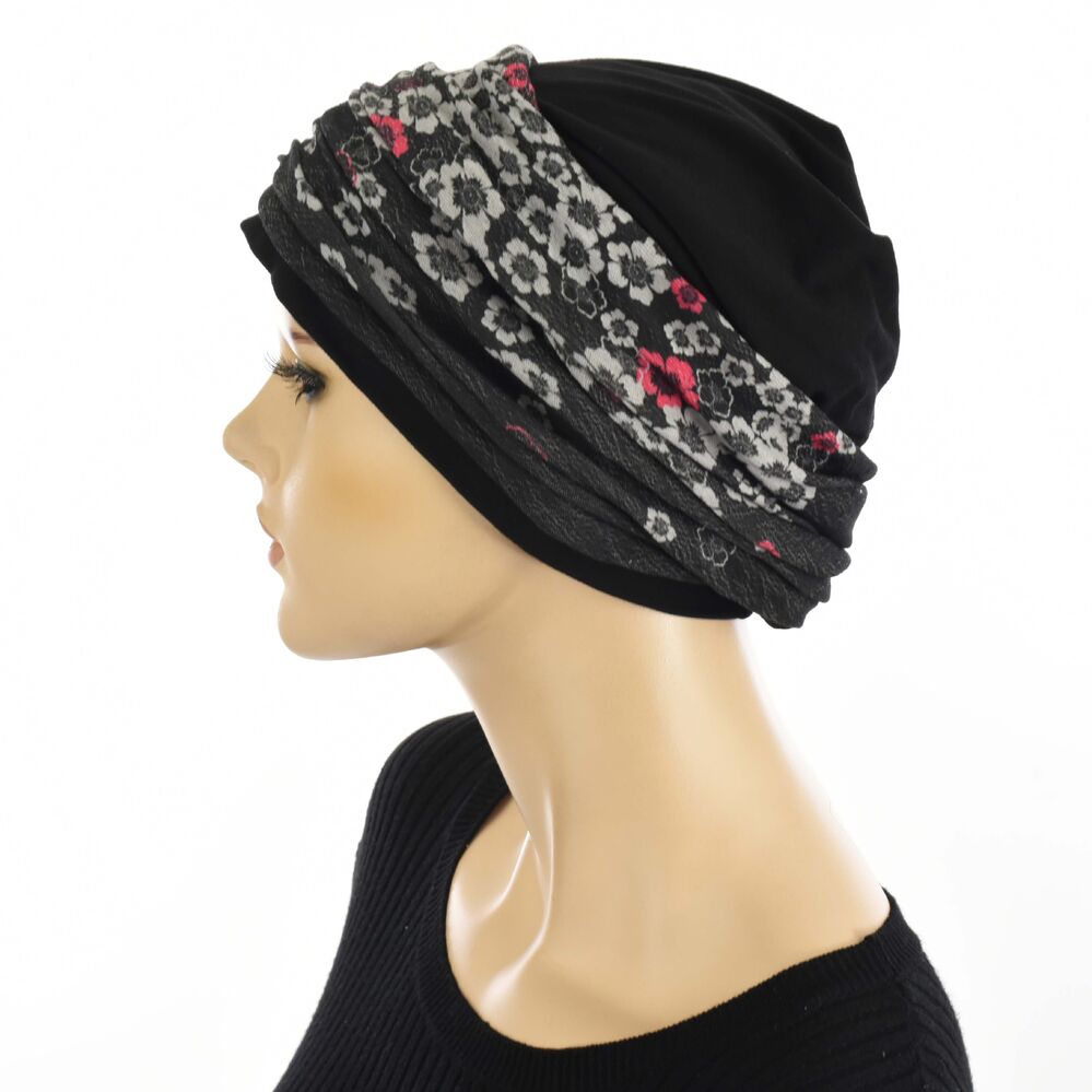 The Black Premium Cotton Beanie is made from our favourite jersey knit fabric, 95% cotton and 5% spandex. It is so soft and comfortable – an ideal headwear for those who are experiencing hair loss due to medical conditions such as chemotherapy and alopecia.