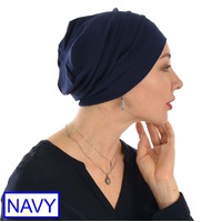 Headcovers with ornaments such as rosettes, buttons, bows, ribbons, sashes, and folds can divert attention and add visual interest. These elements help create texture and volume, making your head appear fuller and more stylish. View examples: Cotton Beanie with Swirly Back and Buttons or Jersey Turban Katelyn.![]()
