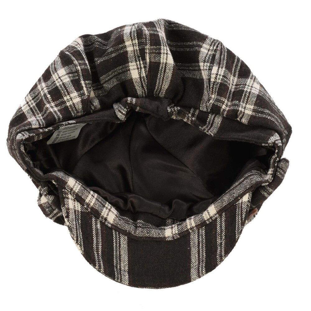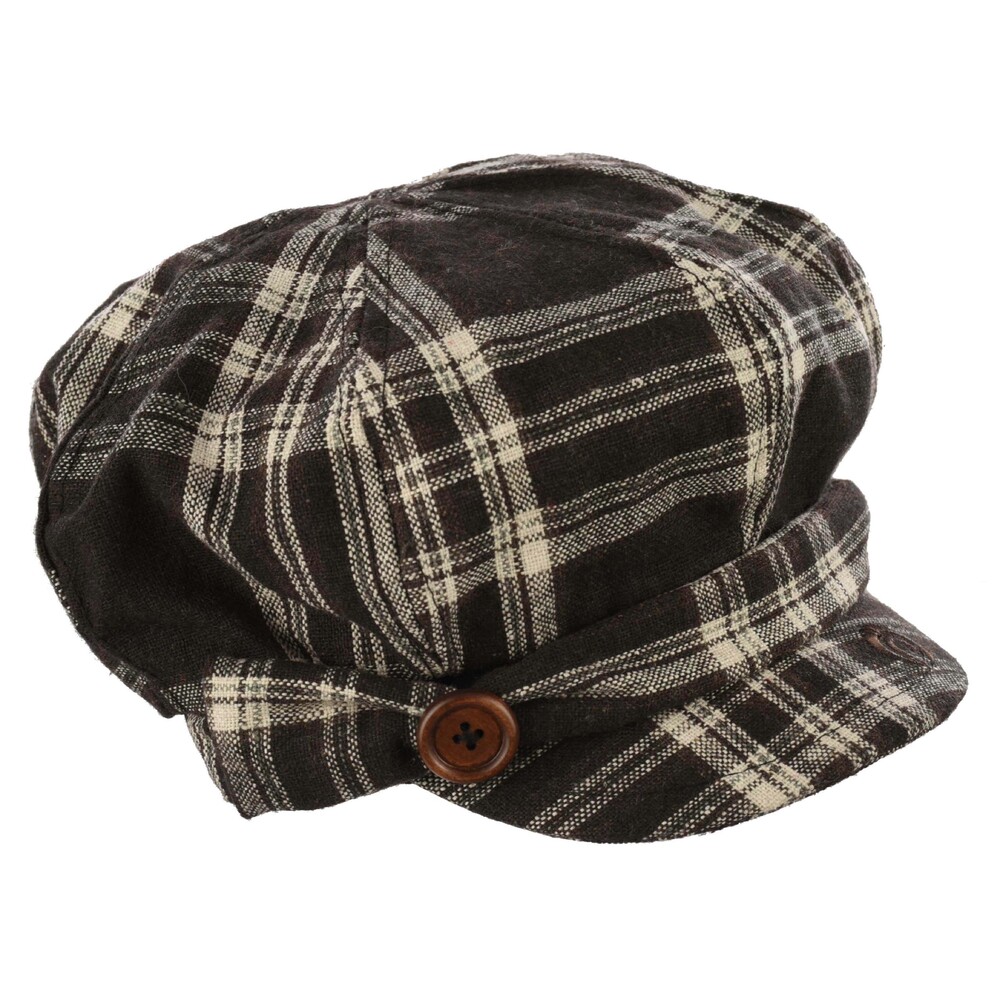 Check Newsboy Hat with Bow & Button | Brown - Chocolate Brown | S