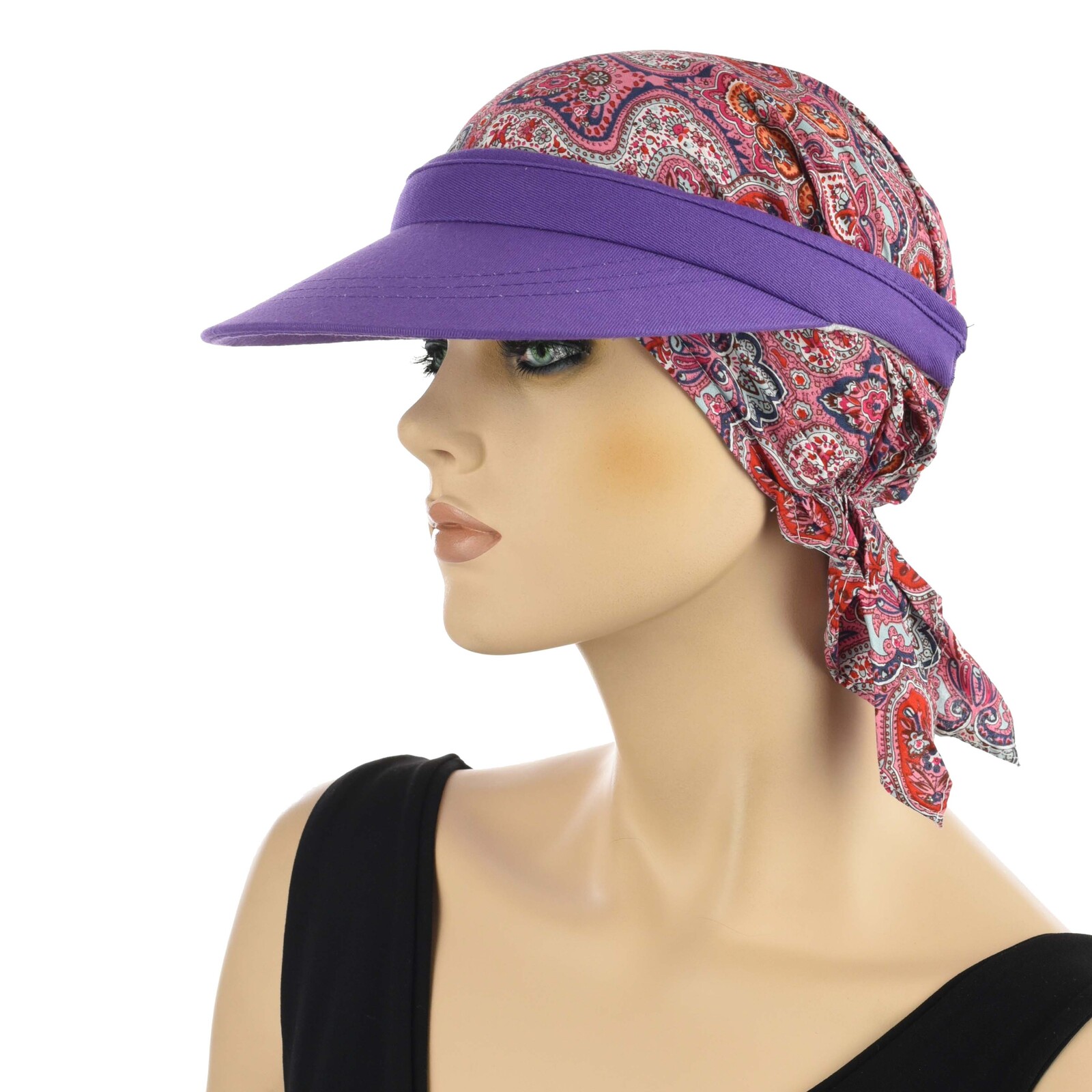 Chemo Head Wrap Scarf & Visor Set | Purple Visor N Pink Paisley Print Headwrap | XS/S