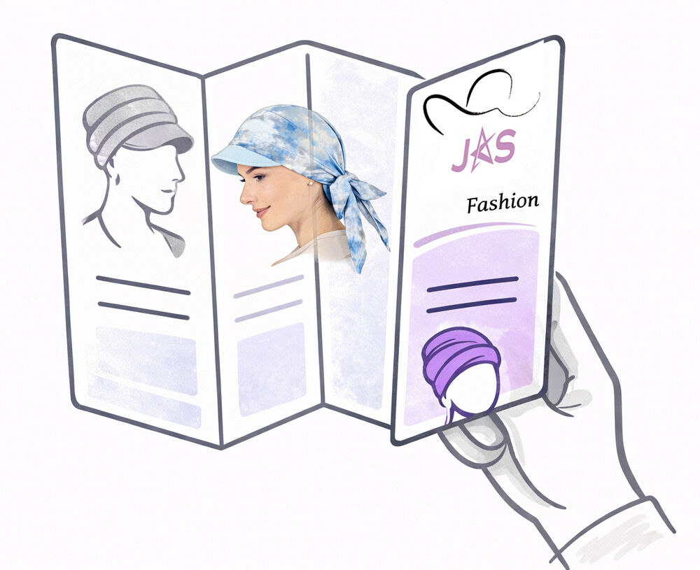 This brochure introduces a range of comfortable and stylish headwear options, along with simple guidance to help patients feel more confident during their journey.