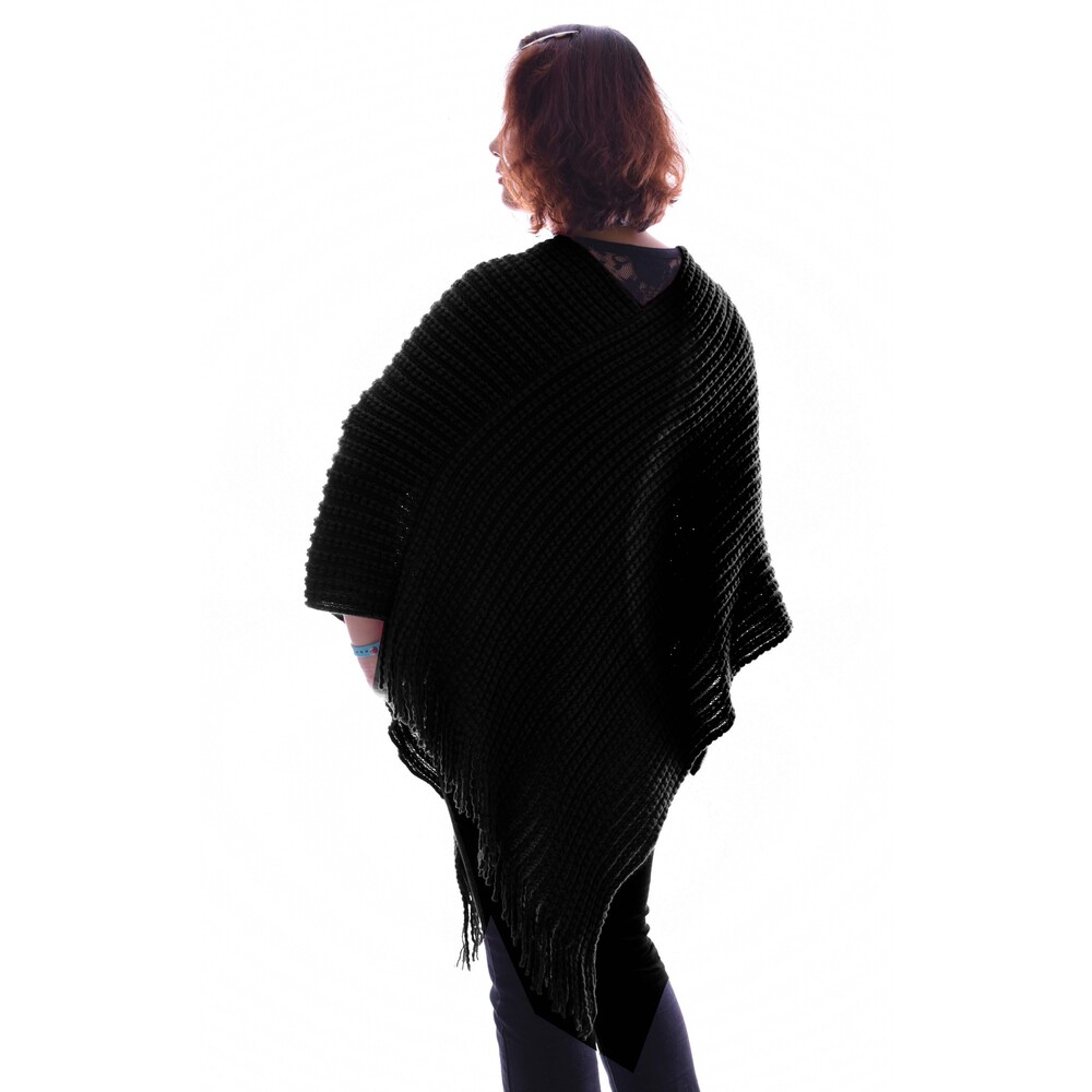 Classic Stretch Poncho | Black - Ribbed Pattern