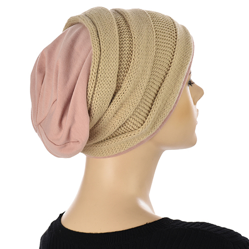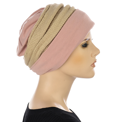 Cotton Beanie and Knit Turban Headband Set | XS/S | Option S5 | Beige Band N Pink Beanie