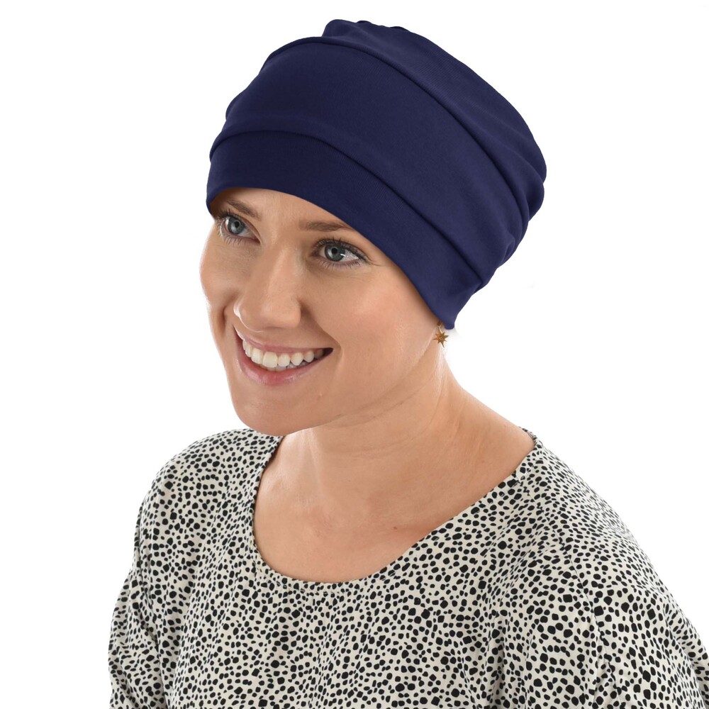 Made from 100% cotton, this beanie is suitable for ladies with hair loss conditions or ladies who would like to cover their hair for religious reasons. Featuring a gathered side for versatility, you can wear it with the gathered dealing at the front, side or back.