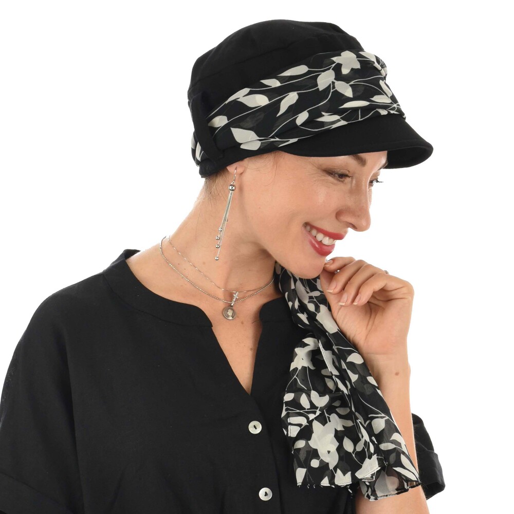 Cotton Cadet Cap with Scarf - Naomi | Option 5: Black | S/M