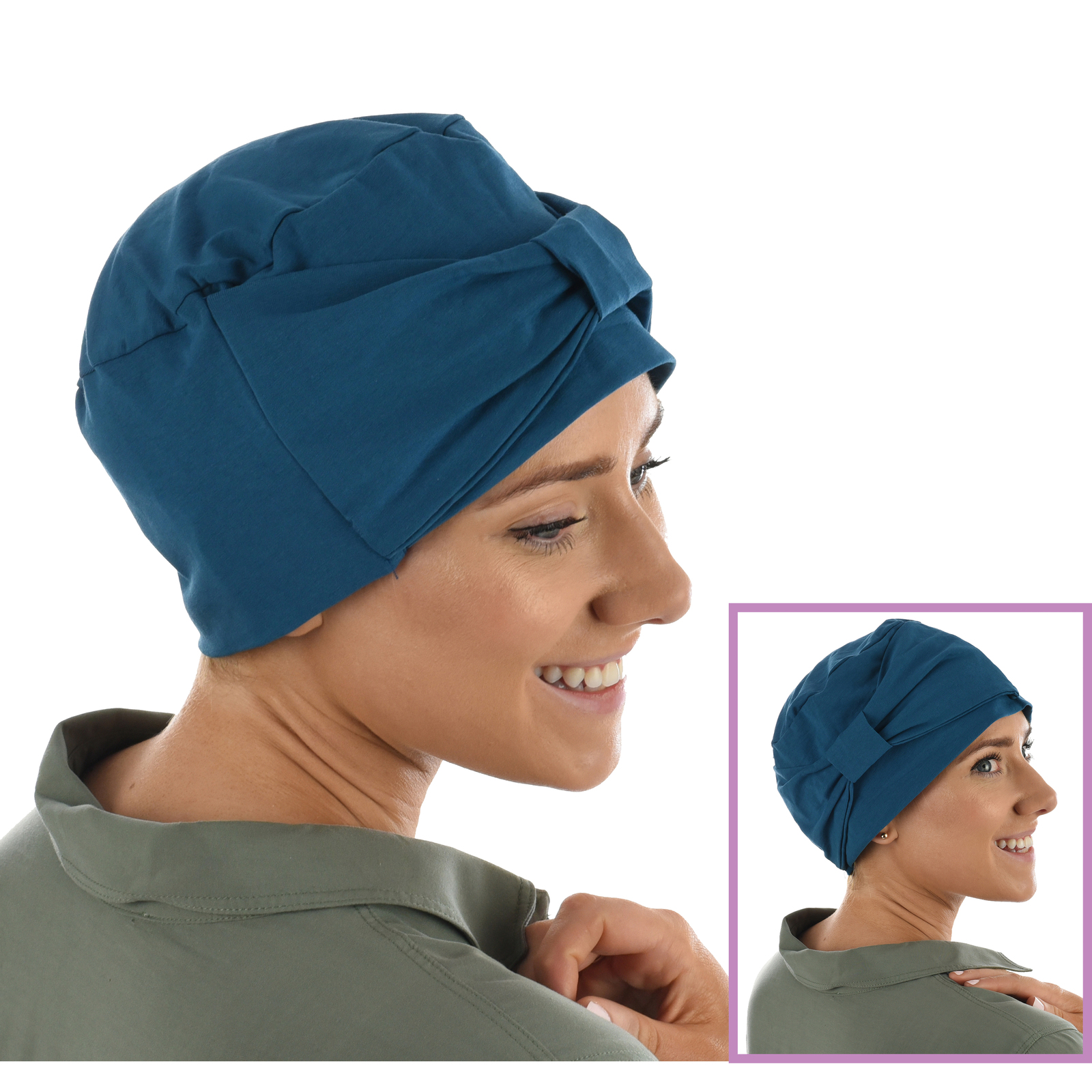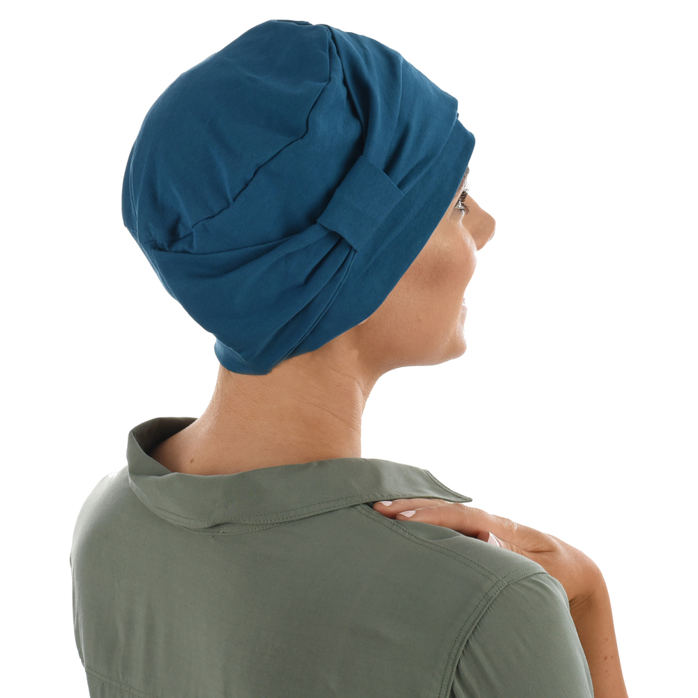 This chemo headwear is designed to be versatile, and the bow can be worn on the side for a sense of elegance or at the front for a turban look. Due to its softness and sweat absorption ability, this hat can be worn as a sleep hat at night time.