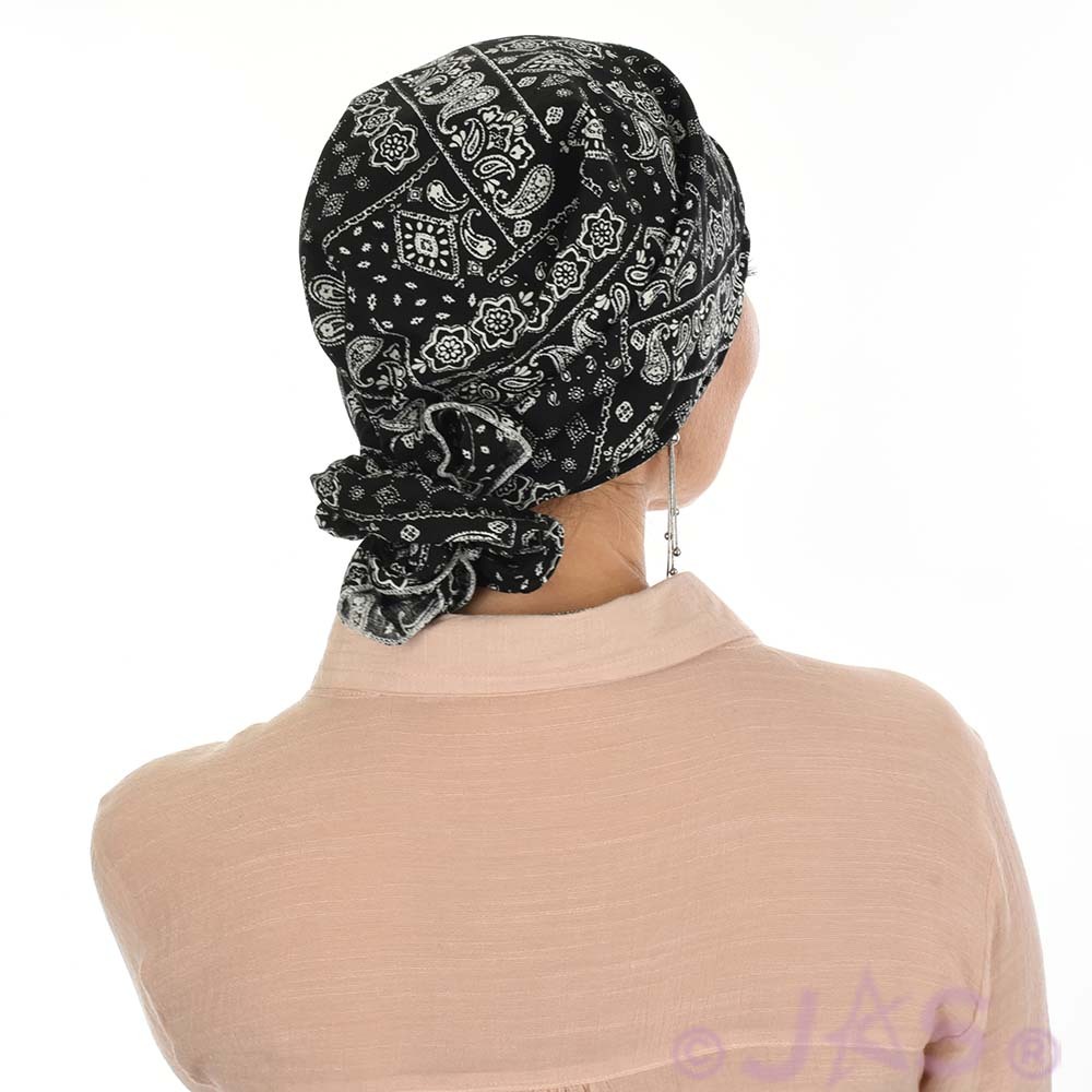 The Head Scarf – Lara features the classic everlasting paisley print, and it will never be out of fashion. The thin and light-weight cotton fabric makes this headscarf a great choice for head covering when someone is experiencing hair loss due to medical conditions such as alopecia and chemotherapy. The is a great handy item if you would like to keep your hair in check when you are out and about or create a boho look.