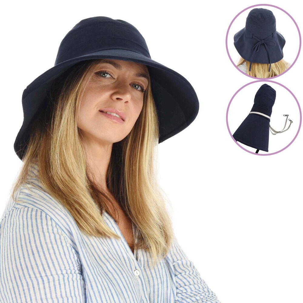 Cotton Wide Brim Sun Hat – Amy | Navy Blue | S/M