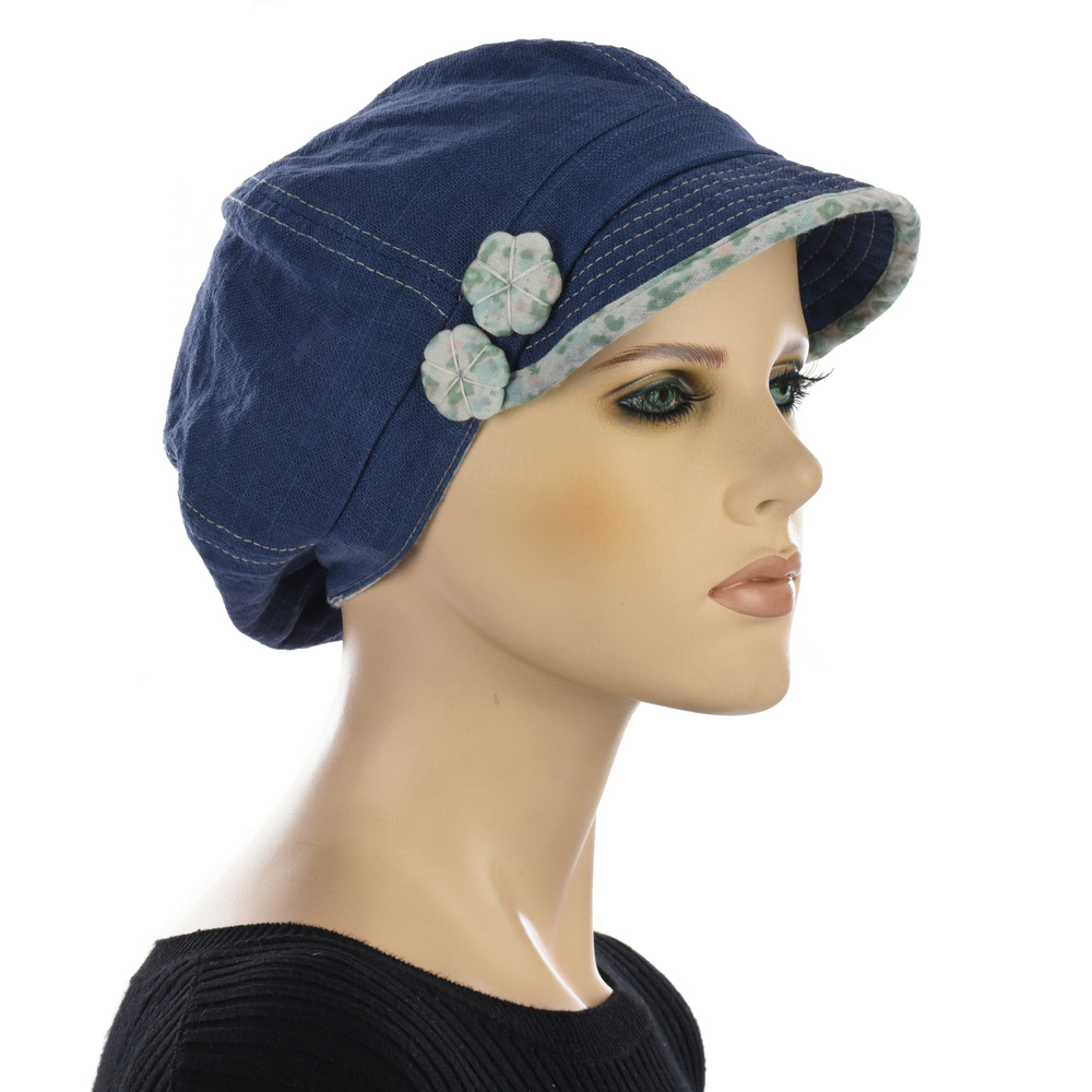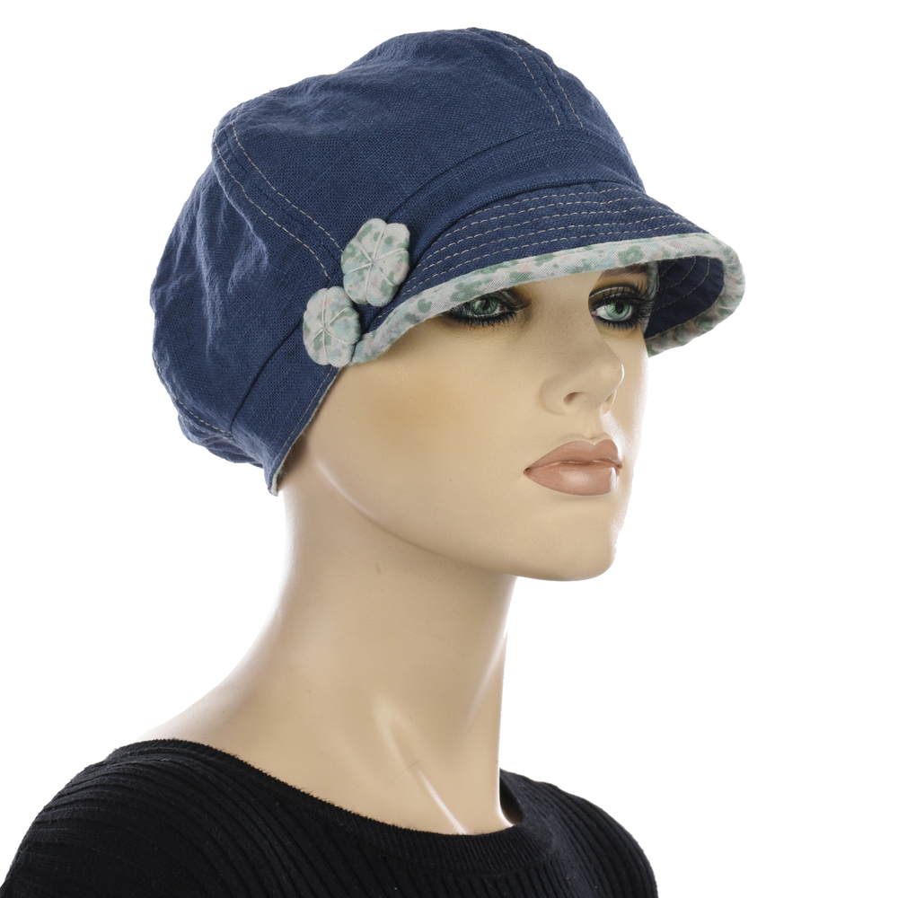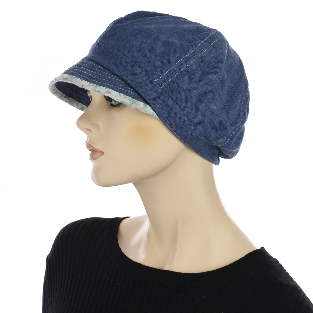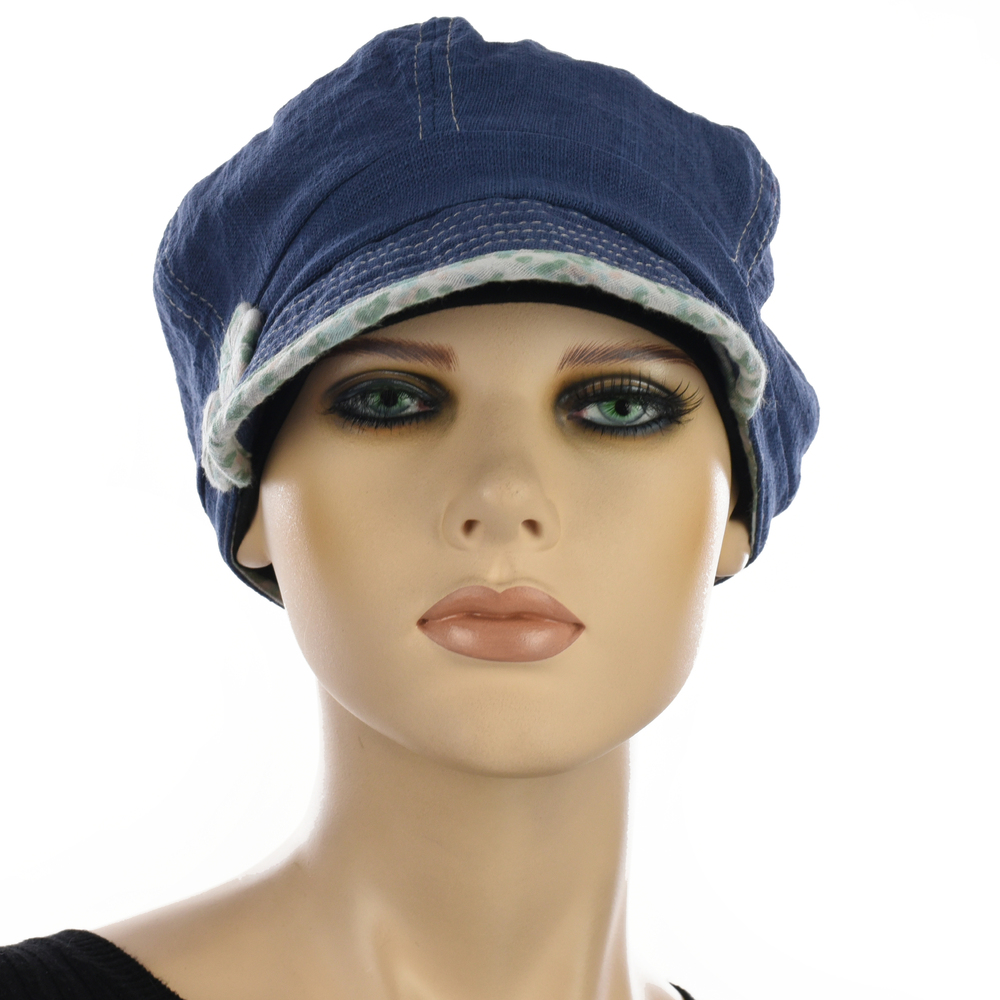 Cream Linen Cabbie Cap with Soft Visor | Blue - Denim Blue