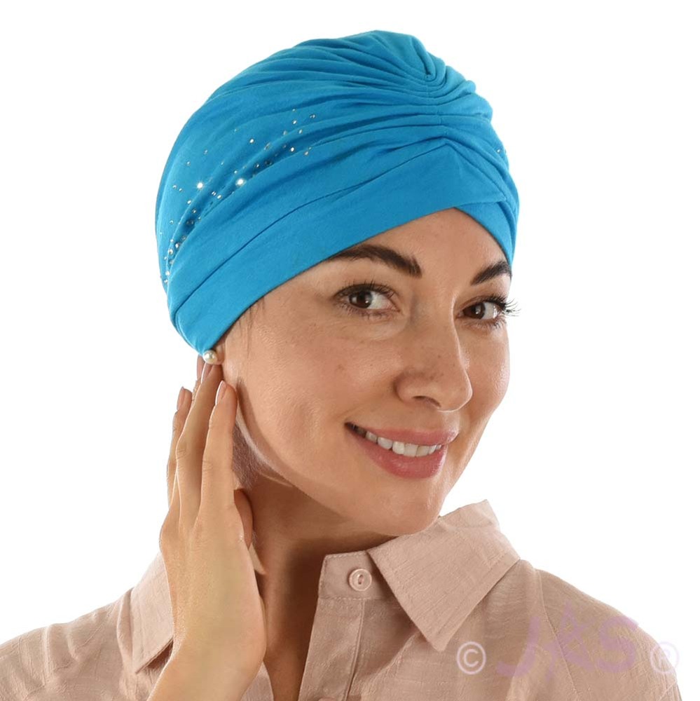 The Diamante Bamboo Turban – Millie can be used as a fashion hat. The diamantes add glamour to your outfit and lift your face immediately. Going to a Gatsby party or feeling like adding some vintage glamour and elegant bling to your outfit? Going away for a holiday? Need a cap to keep your hair in check while putting makeup on? Lack of confidence in your looks due to hair loss? Wrap your head in luxurious softness with the Diamante Bamboo Turban – Millie and step out in style and hold your head high with confidence.