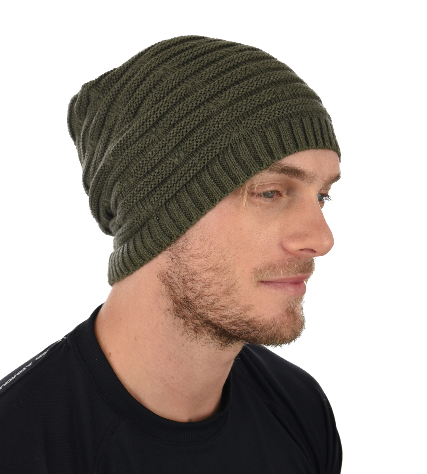 Featuring double ribbed knitting details, this beanie cap offers you a stylish and moderate slouchy look.