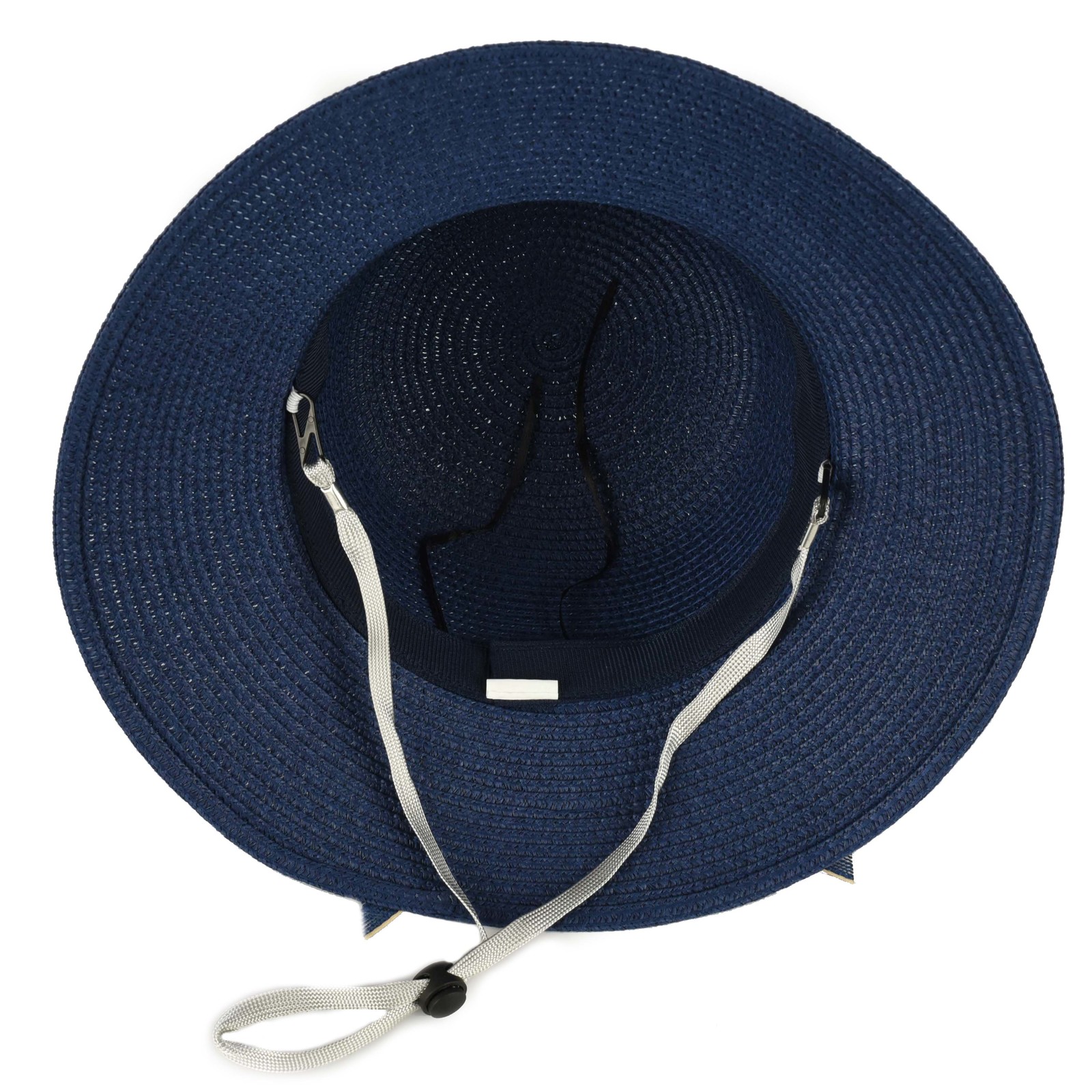 Hidden interior drawstring makes the hat size adjustable, and the chin drawstring, which is removable, keeps the hat secure on windy days.