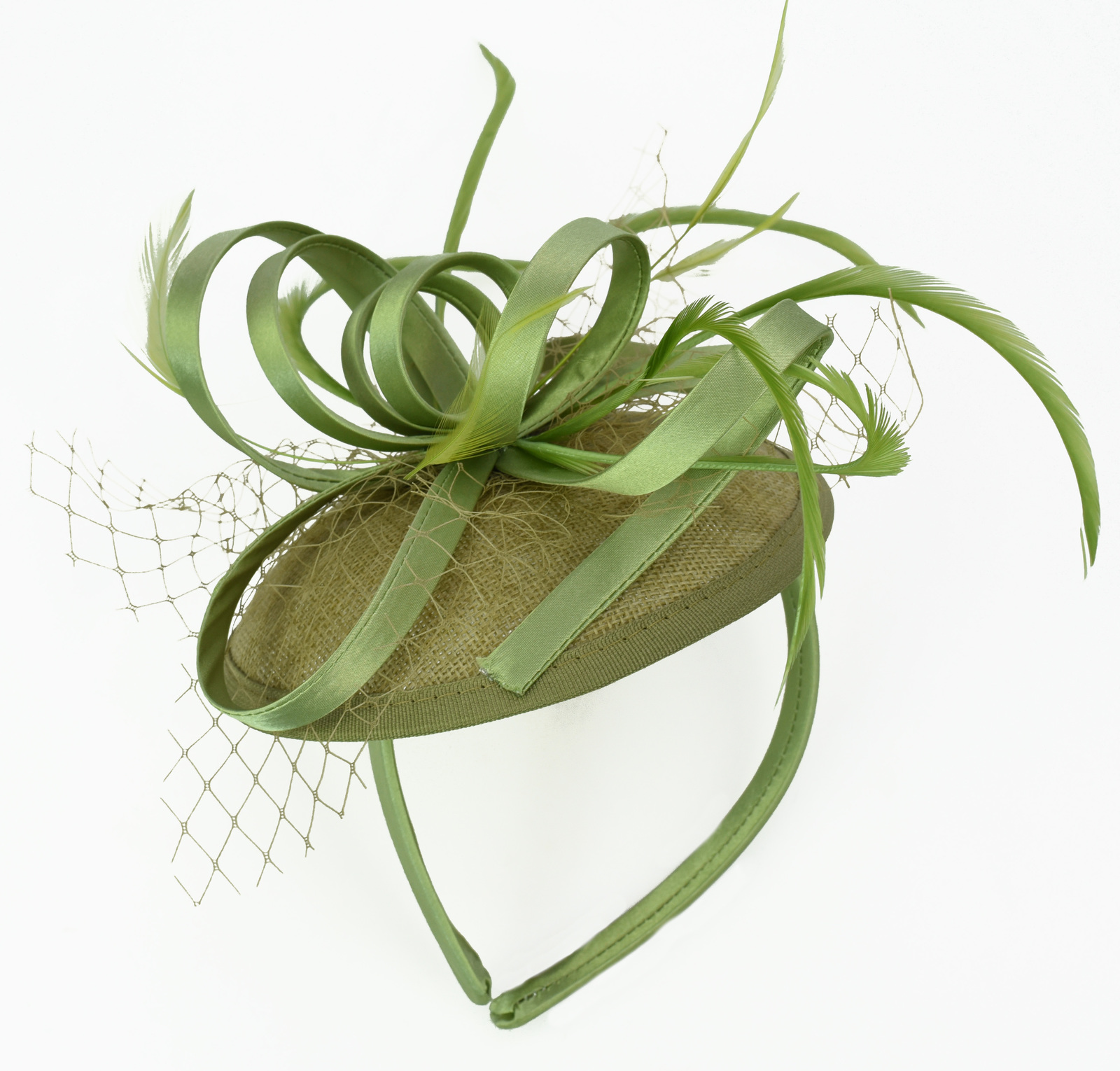 Feather Fascinator Hat with Ribbon | Green - Olive Green