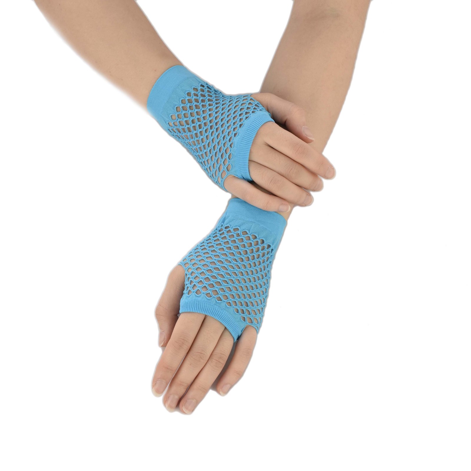 Fishnet Gloves Palm-Wrist Length | Blue - Sky Blue / Aqua Blue