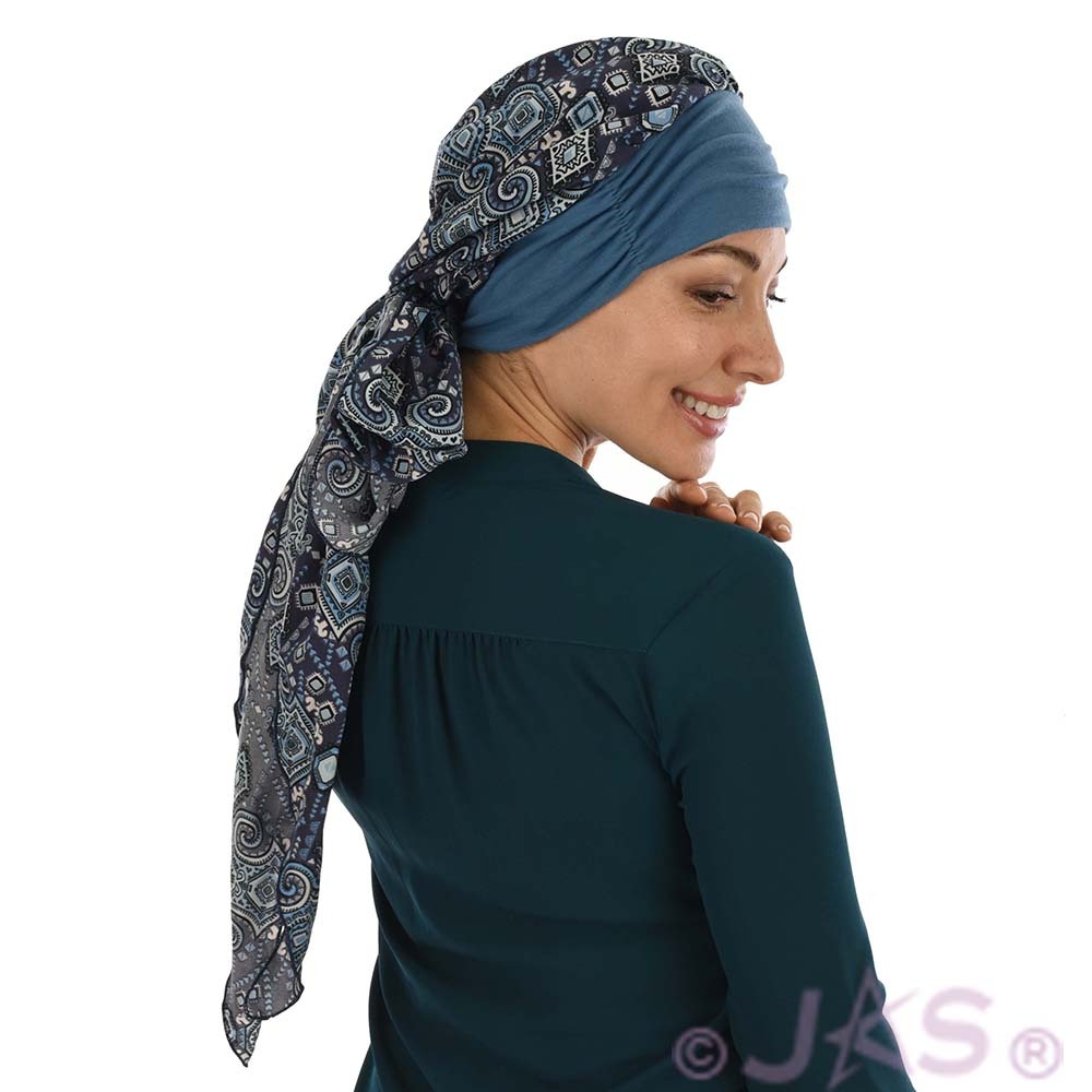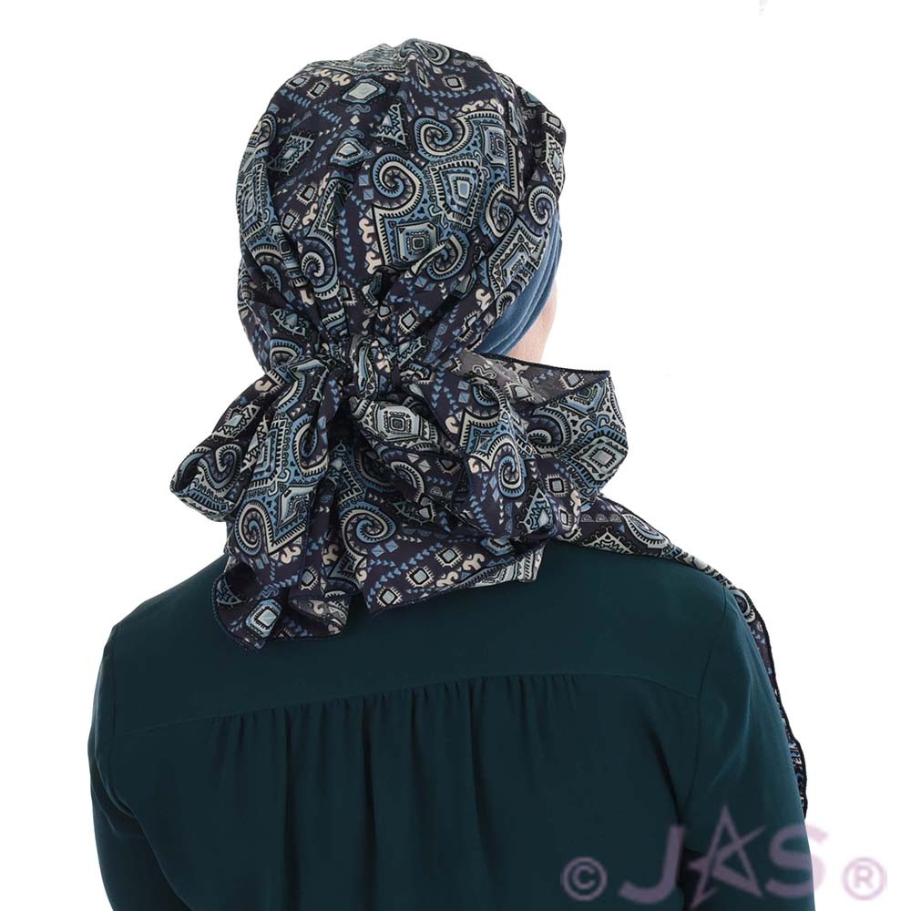 Floral Head Scarf with Headband Gracie | #3 Denim Blue & Geometrical