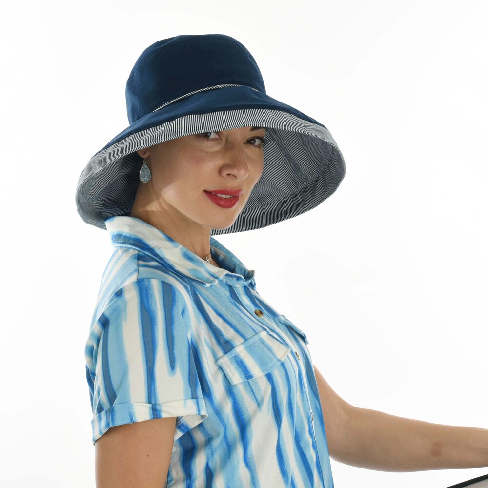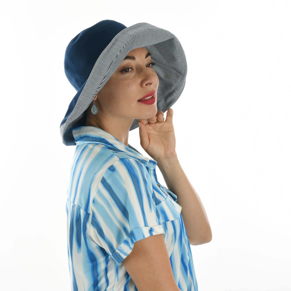Foldable Linen Wide Brim Sun Hat | Navy Blue