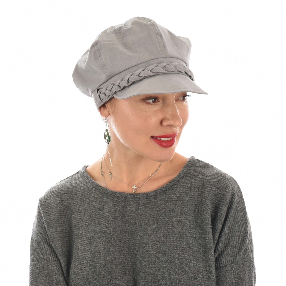 High Crown Bakerboy Chemo Hat with Braid Hatband | Light Grey | High Crown | Stretch Fit
