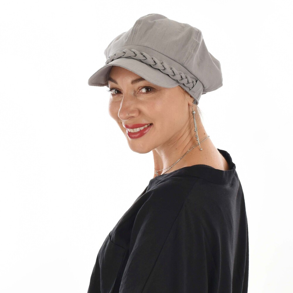 High Crown Bakerboy Chemo Hat with Braid Hatband | Light Grey | Modified Crown | Stretch Fit