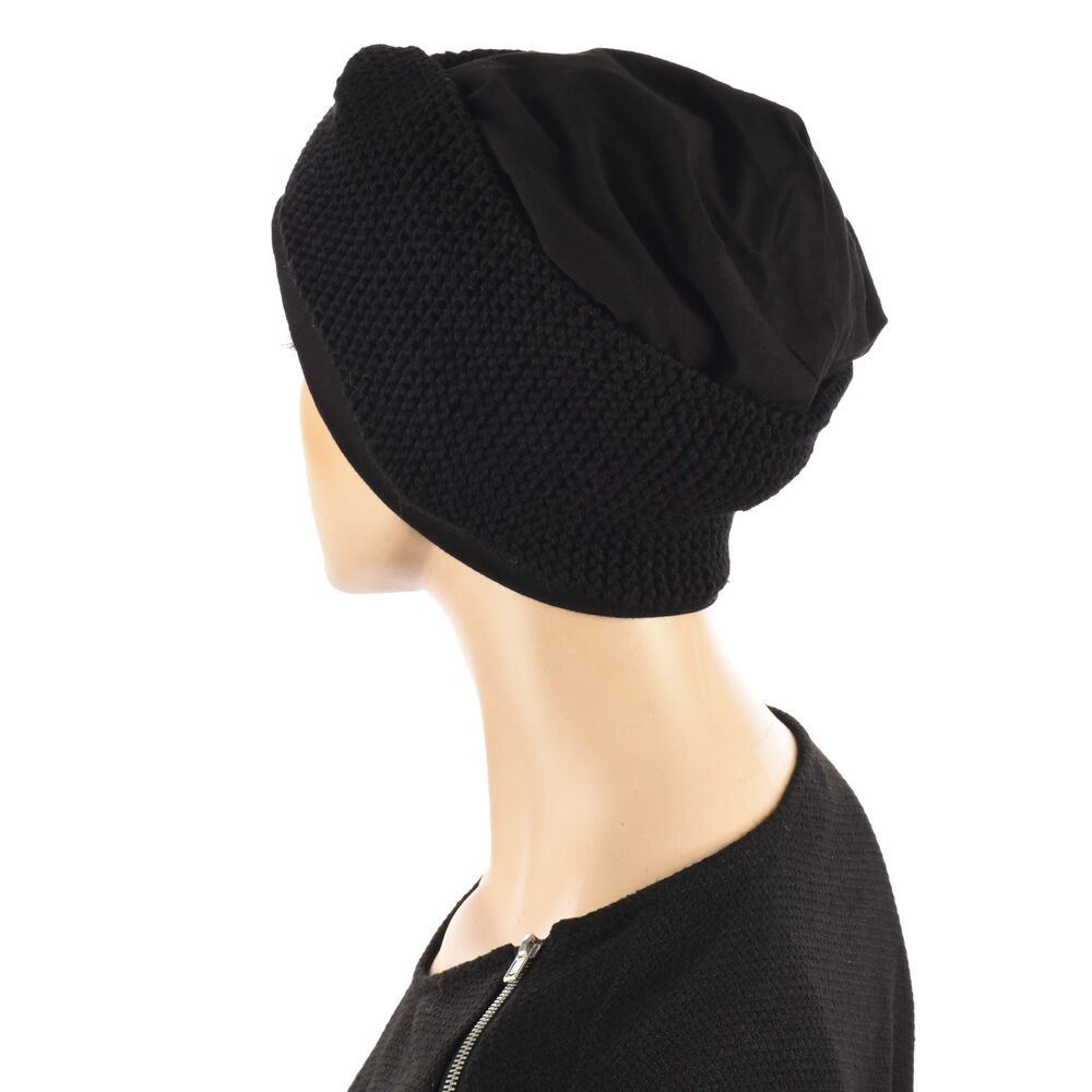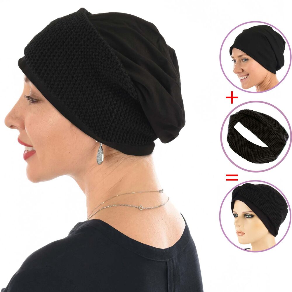 Jersey Cotton beanie n Knit Turban Headband | Black | S/M