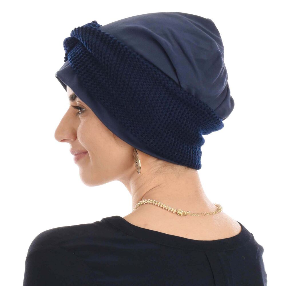 Jersey Cotton beanie n Knit Turban Headband | Navy | S/M