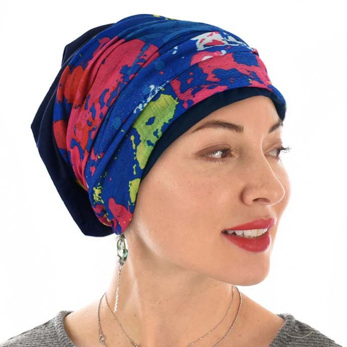 The Jersey Cotton Slip-on Slouch Beanie Cap is made from stretchable jersey fabric (95% cotton and 5% spandex), ideal for those with sensitive skin, great for those with hair or those without hair due to hair loss, cancer or chemo. It is constructed with a double layer of fabric and a hidden seam.