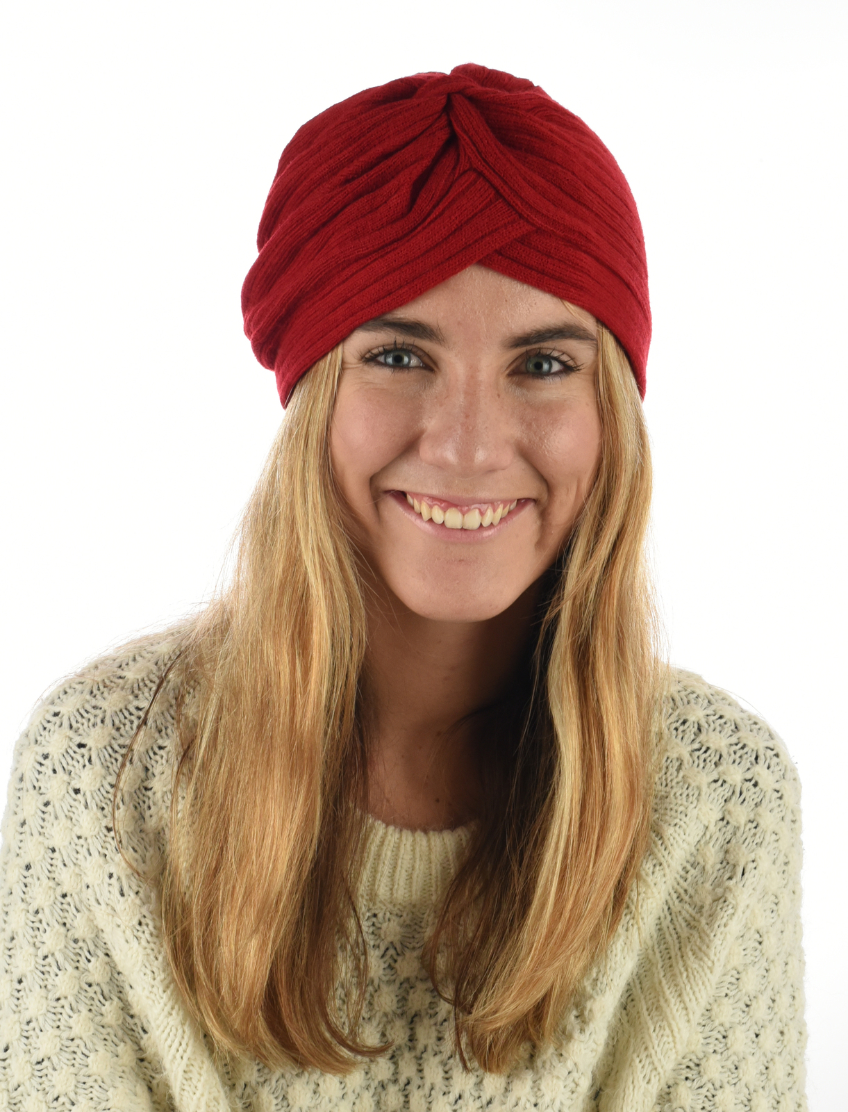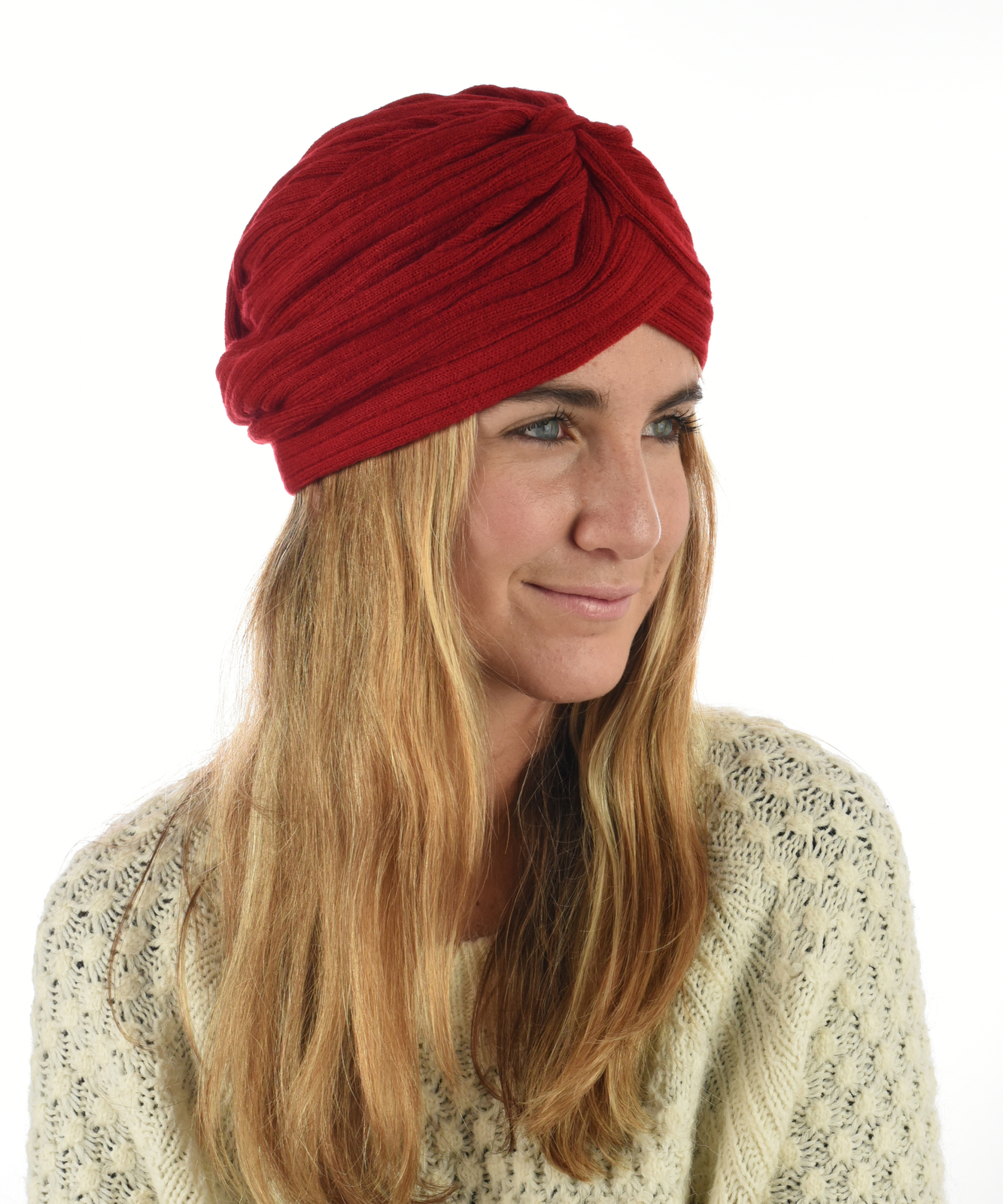 This knit turban is a timeless headwear piece offering both warmth and fashion.
