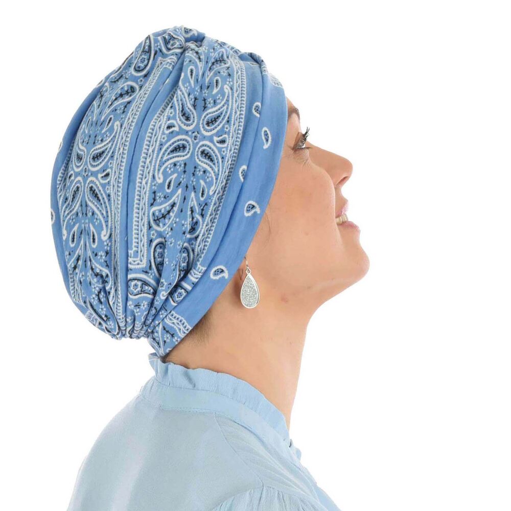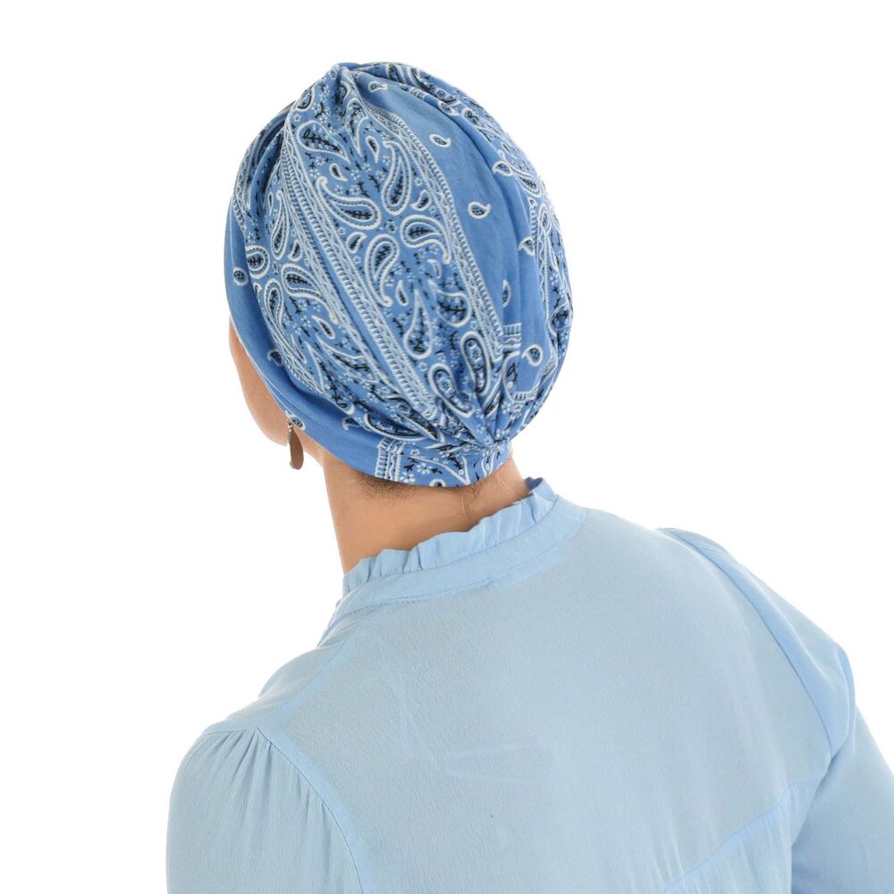 Floral Turban for Women with Hair Loss - Molly | #2 White Paisley on Blue | M/L/XL