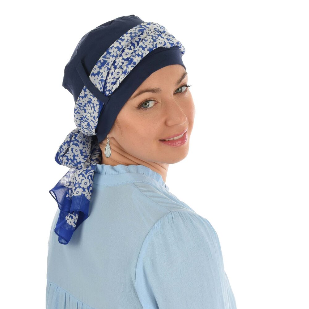 Looped Cotton Turban - Denise | Navy Blue / Dark Blue | S/M |With Sash