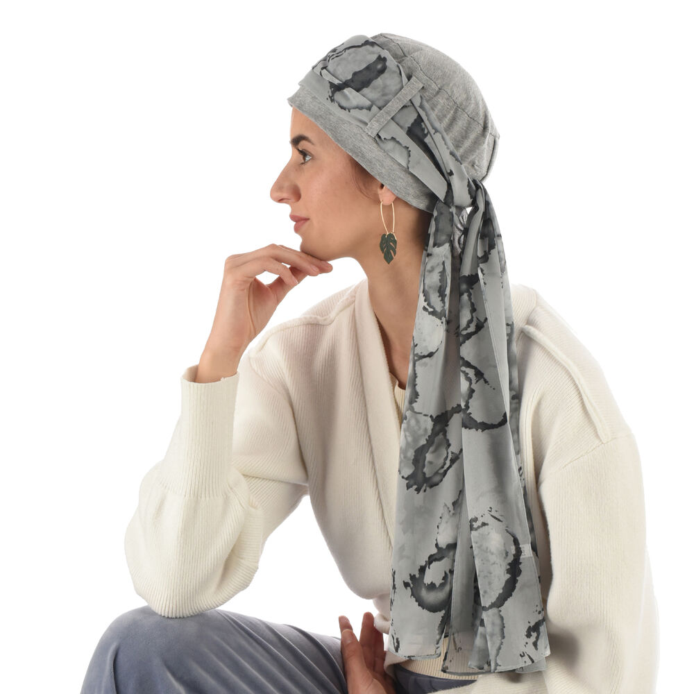 Looped Cotton Turban - Denise | Grey | M/L |With Sash
