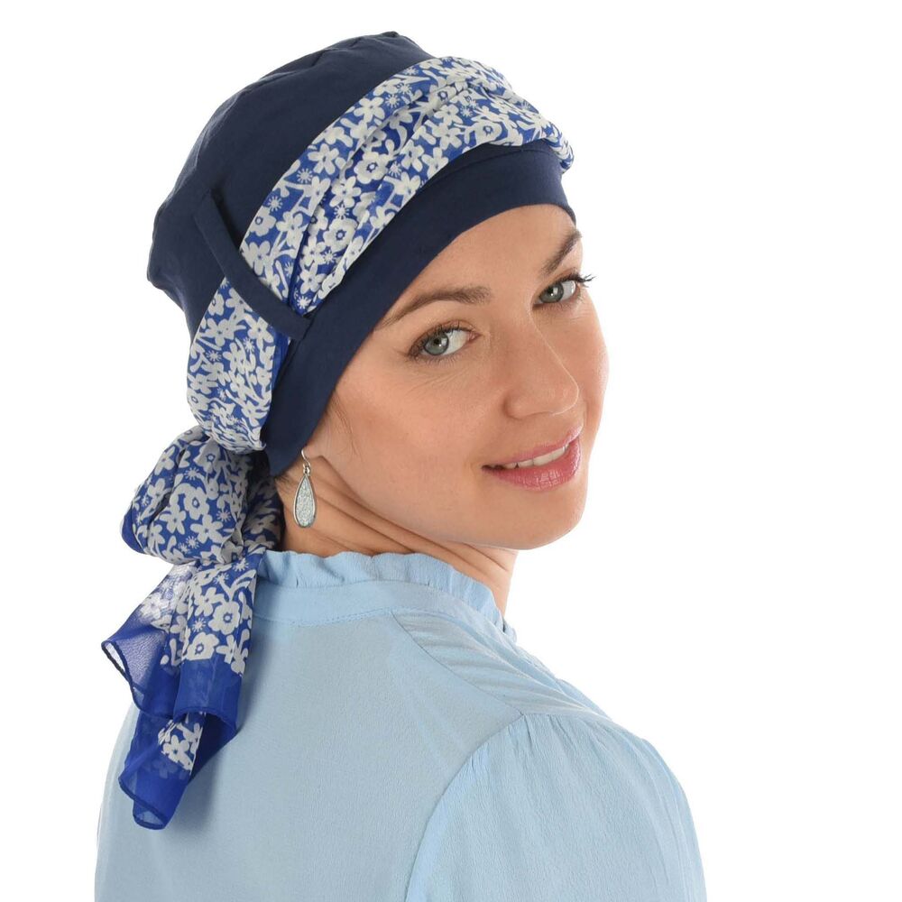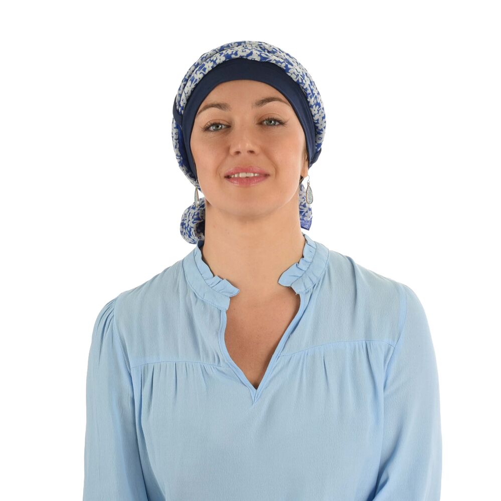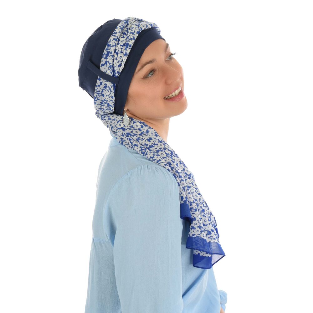 Looped Cotton Turban - Denise | Navy Blue / Dark Blue | M/L |With Sash