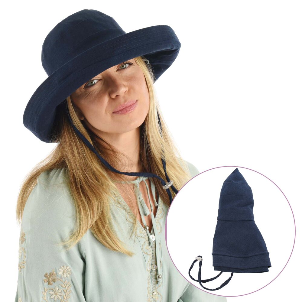 Packable Linen Sun Hat – Ann | Navy Blue | M/L