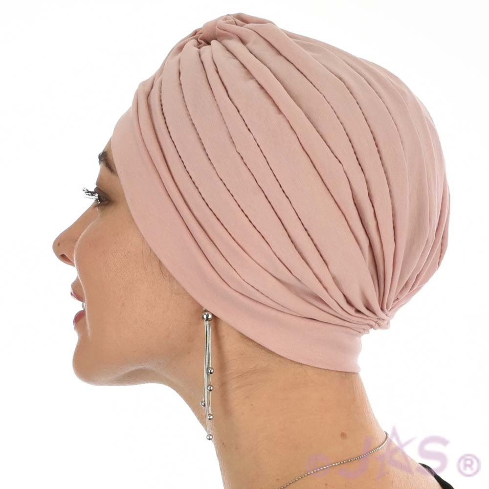 The Pleated Classic Jersey Cotton Turban is made of our premium jersey knit fabric. It has 95% cotton and 5% spandex. This soft turban is great for those who are experiencing hair loss due to cancer chemotherapy treatment or alopecia caused by other medical conditions.