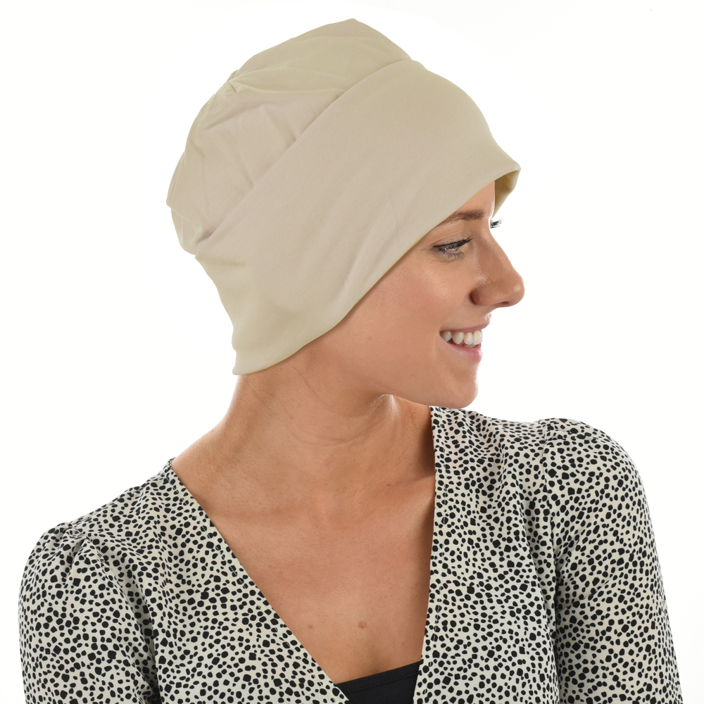 Premium Cotton Slip-on Sleep Cap Beanie | Beige | S/M