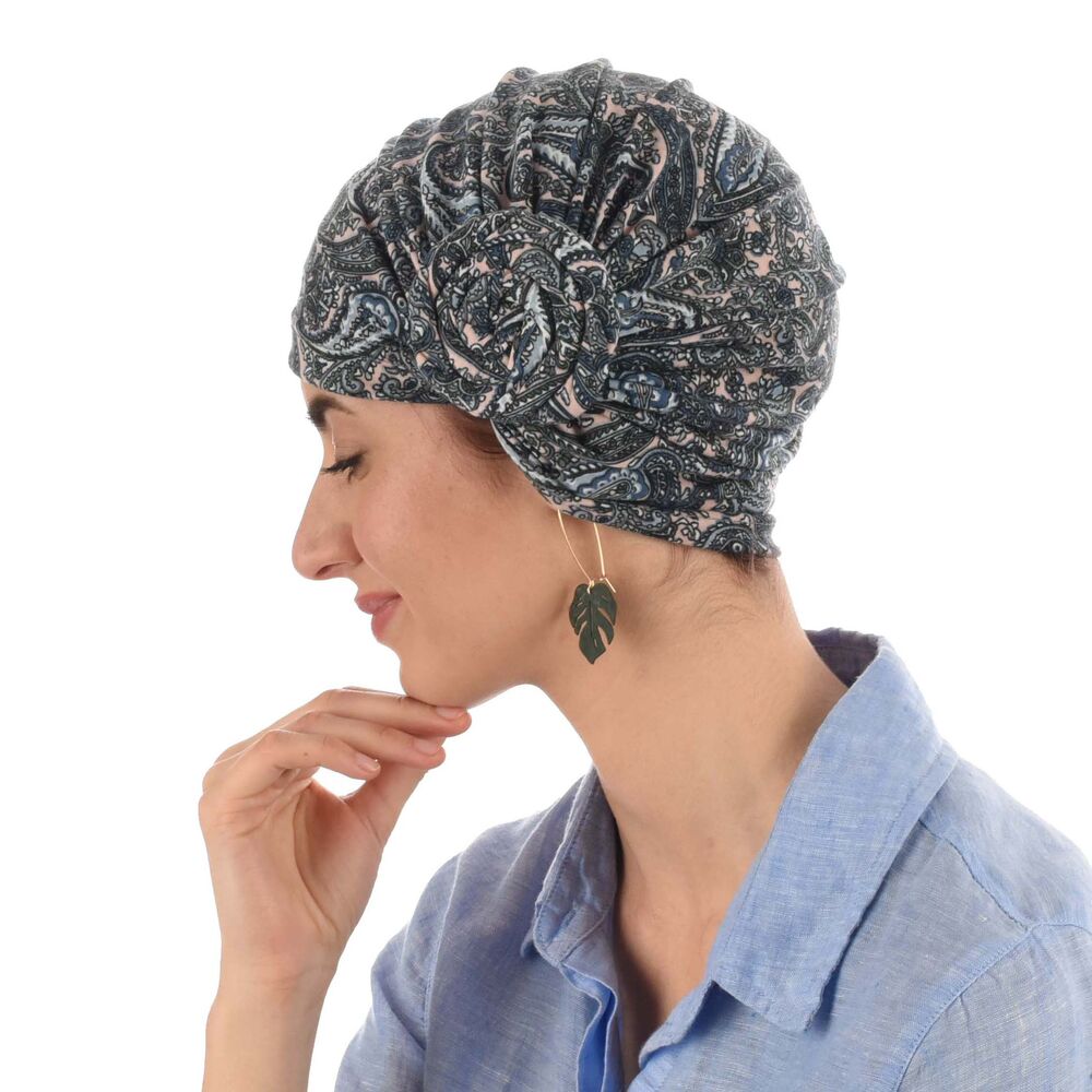 Reversible Pre-tied Head Wrap Turban |#1 Paisley Print Grey & Pink