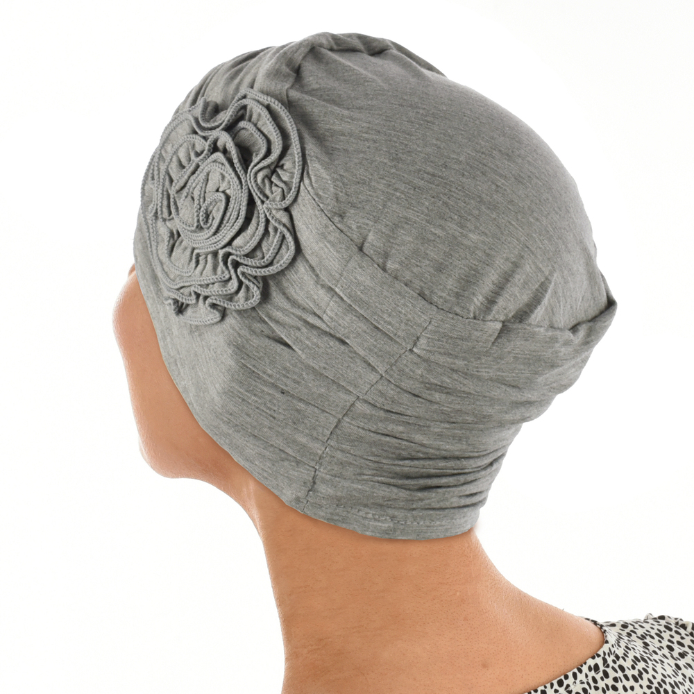 As this turban hat is made of the most desired chemo fabric – bamboo, the volume of the hat doesn’t compromise the comfort of the hat. The Rosette Ruched Turban – Hannah is soft and stretchy.