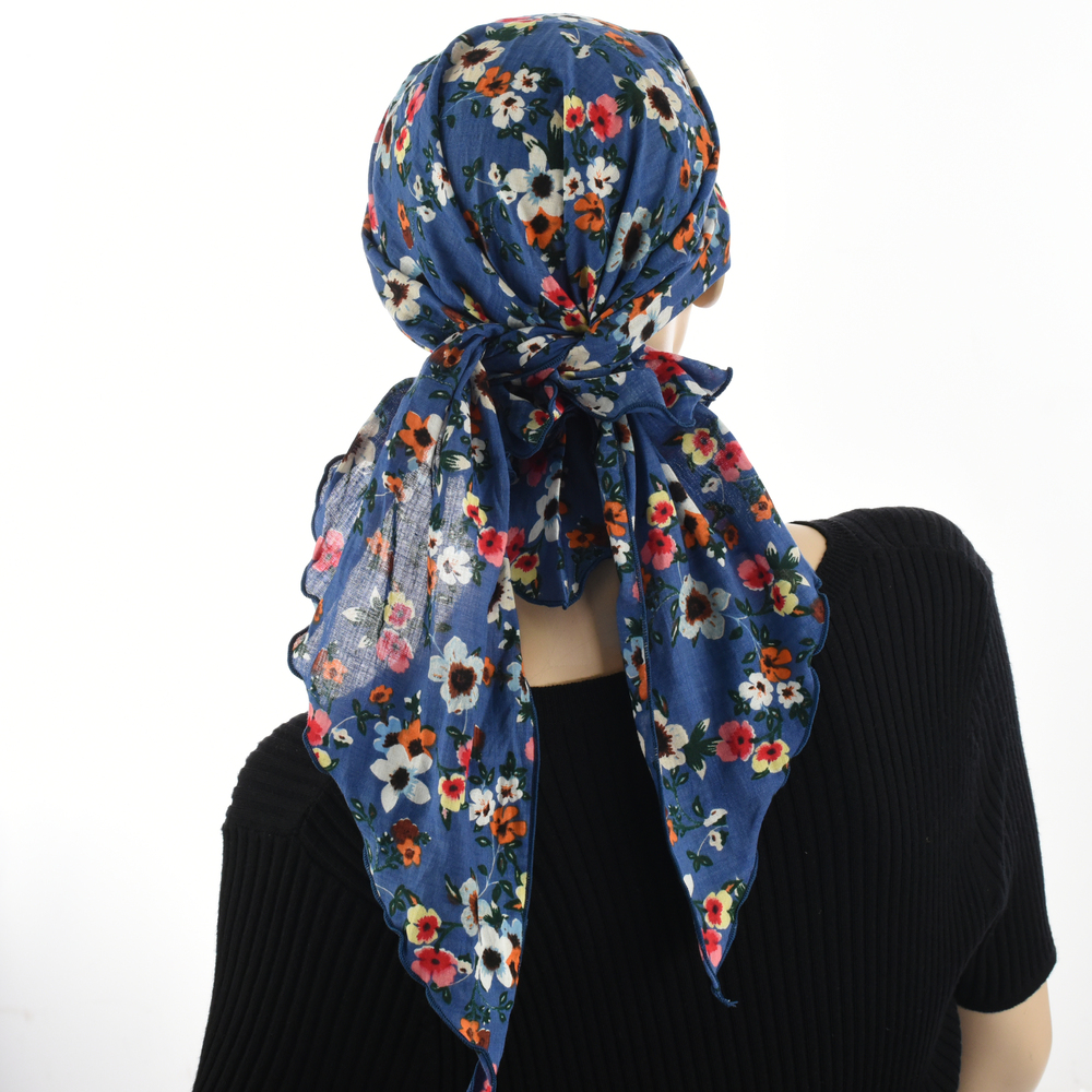 Its generous size provides versatility in styling options. As demonstrated, it can be worn simply by draping the scarf over your head and tying the two ends at the back like a bandana. You