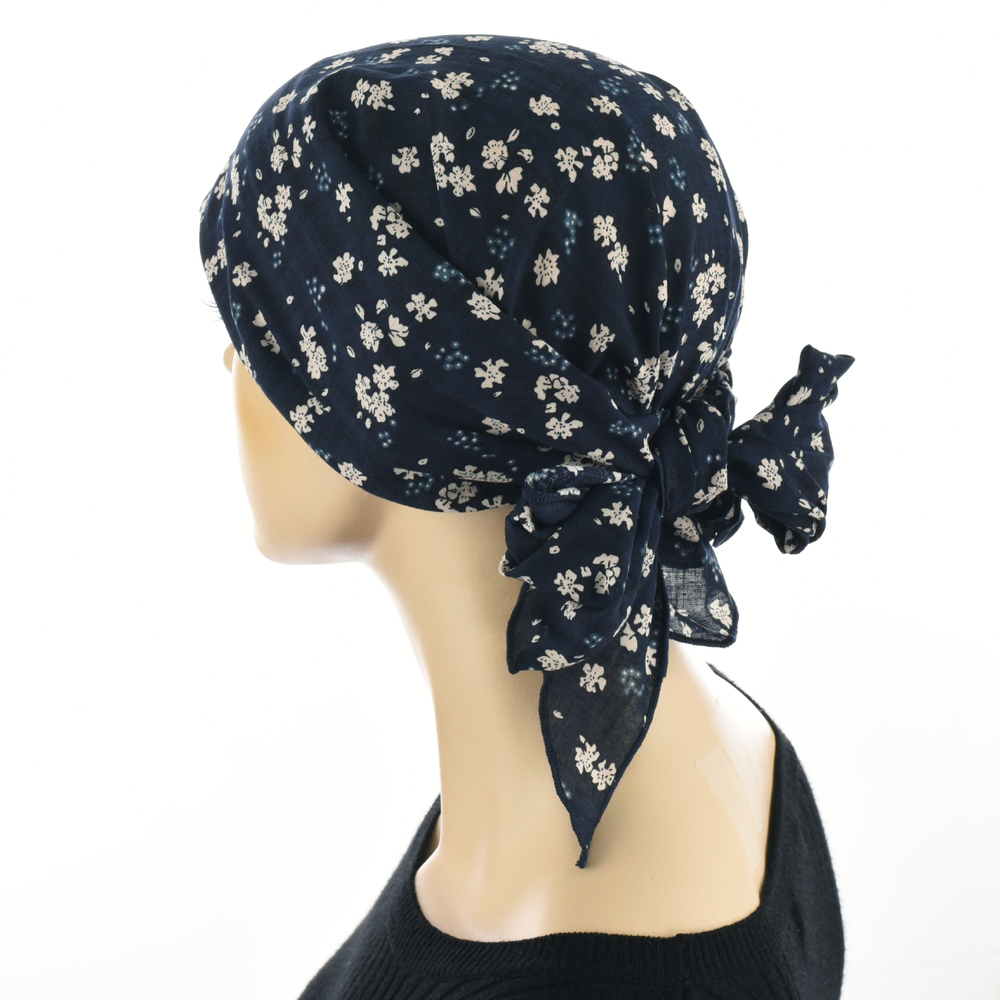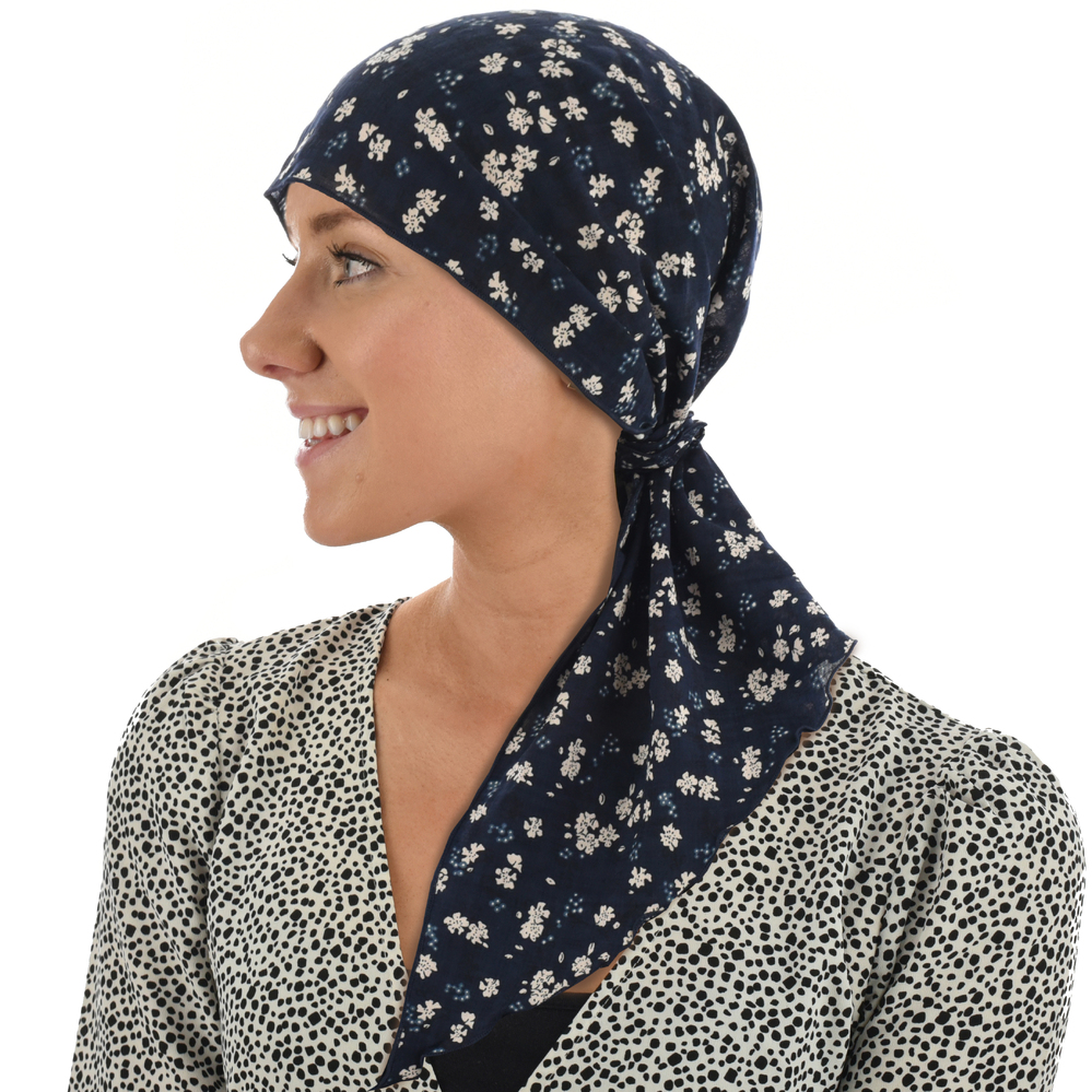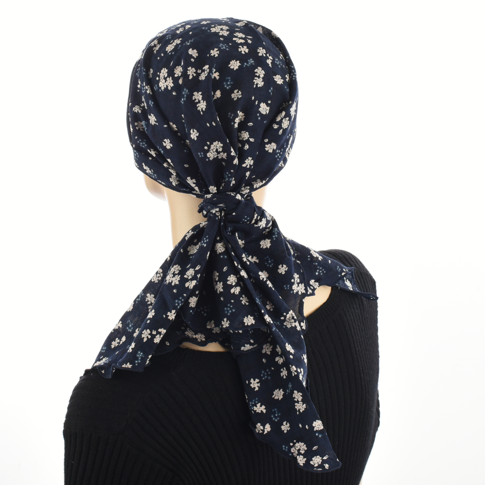 The Ruffled Floral Print Triangle Scarf is a great alternative to a chemo hat in warm seasons. Whether you are on the go seeking an easy and simple styling option or you would like to have fun with some creative and personalized styling options, the Ruffled Floral Print Triangle Scarf will suit your needs.