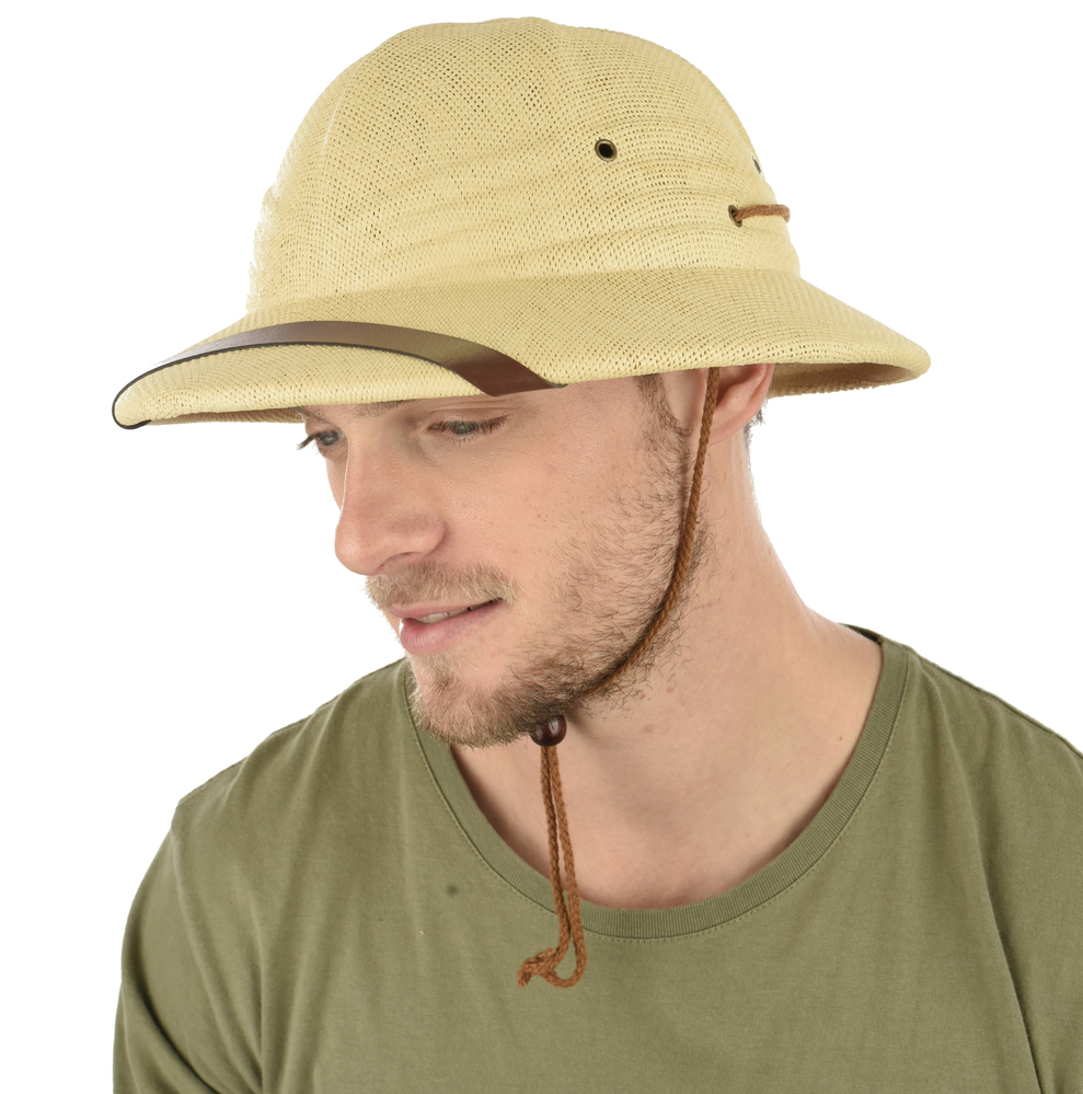 Featuring a solid and sturdy crown, made of 100% breathable toyo (special paper yarn), this safari helmet hat is light in weight but solid and sturdy to touch. It provides not only sun protection but also provides some protection from head injury due to accidental collision or impact from falling objects.