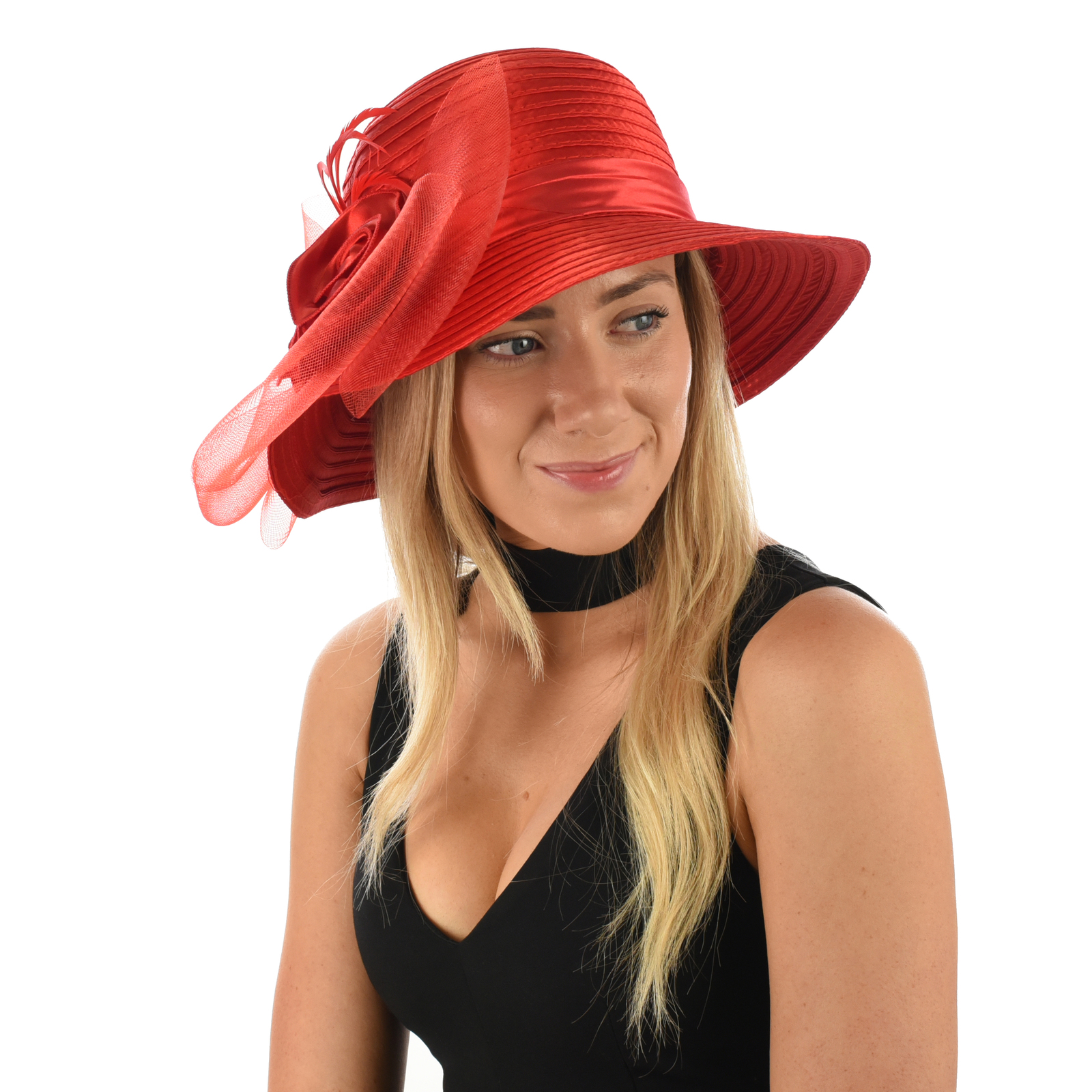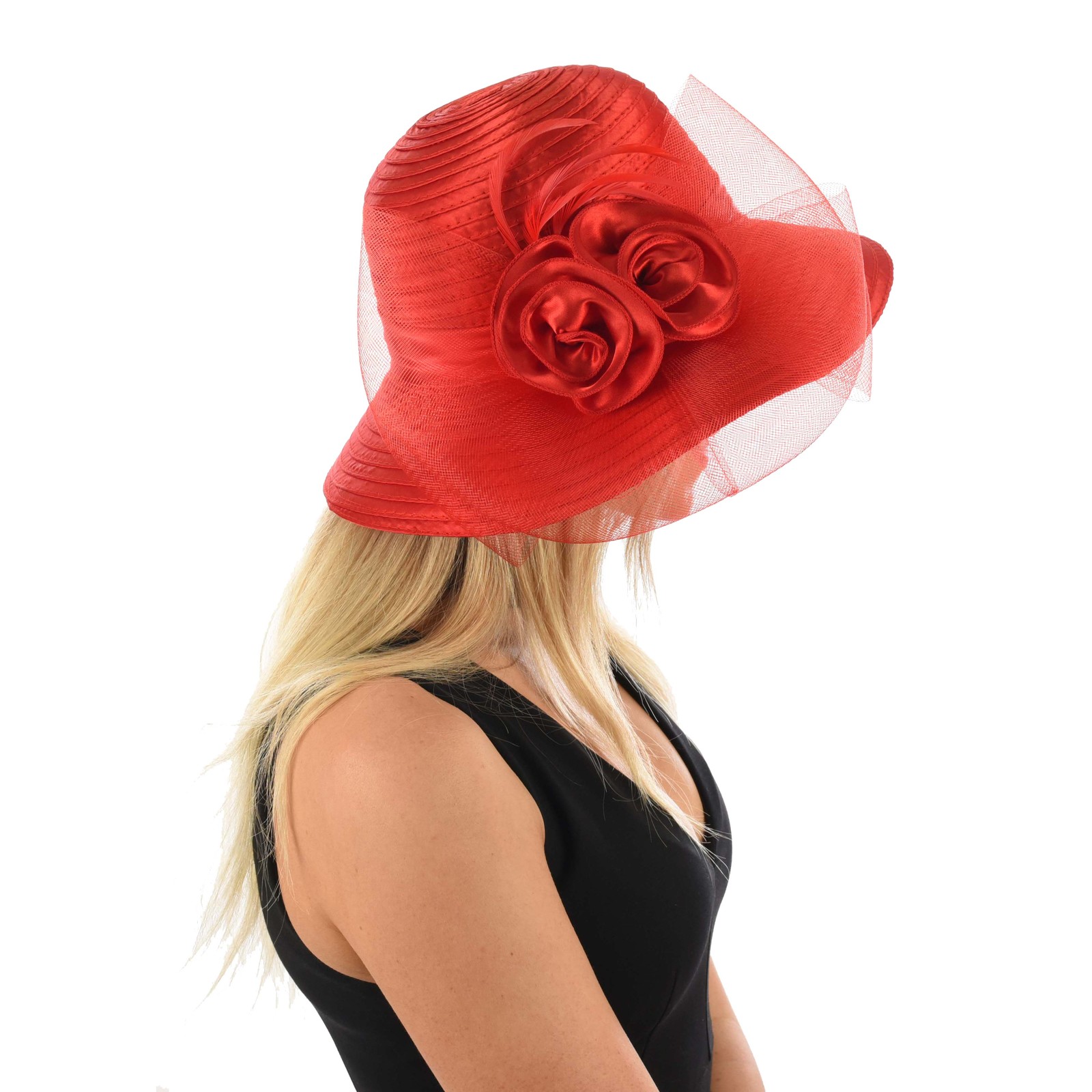 ...Click to Read MoreSatin Twin Rose Evening Hat