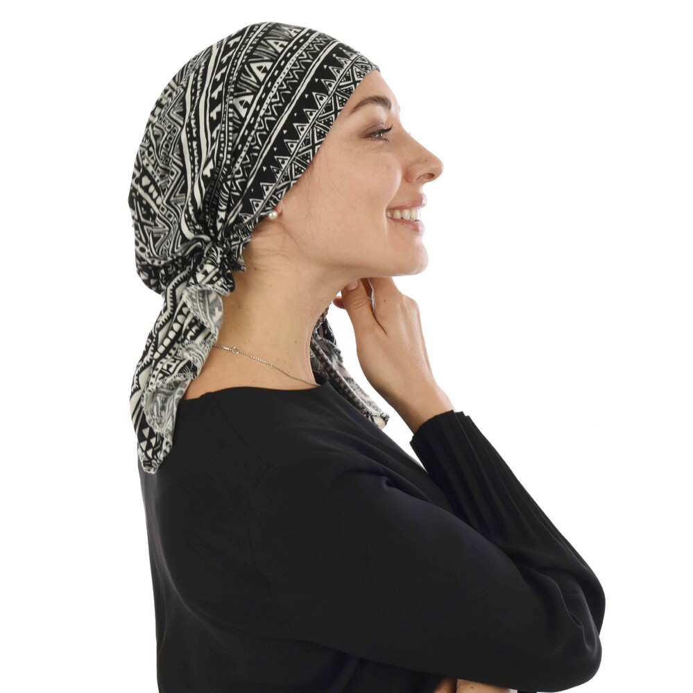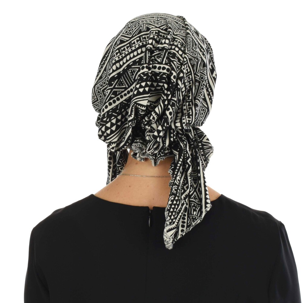 Slouchy Pre-tied Floral Scarf Lena | #5 Ethnic Tribal Pattern Print - White and Black
